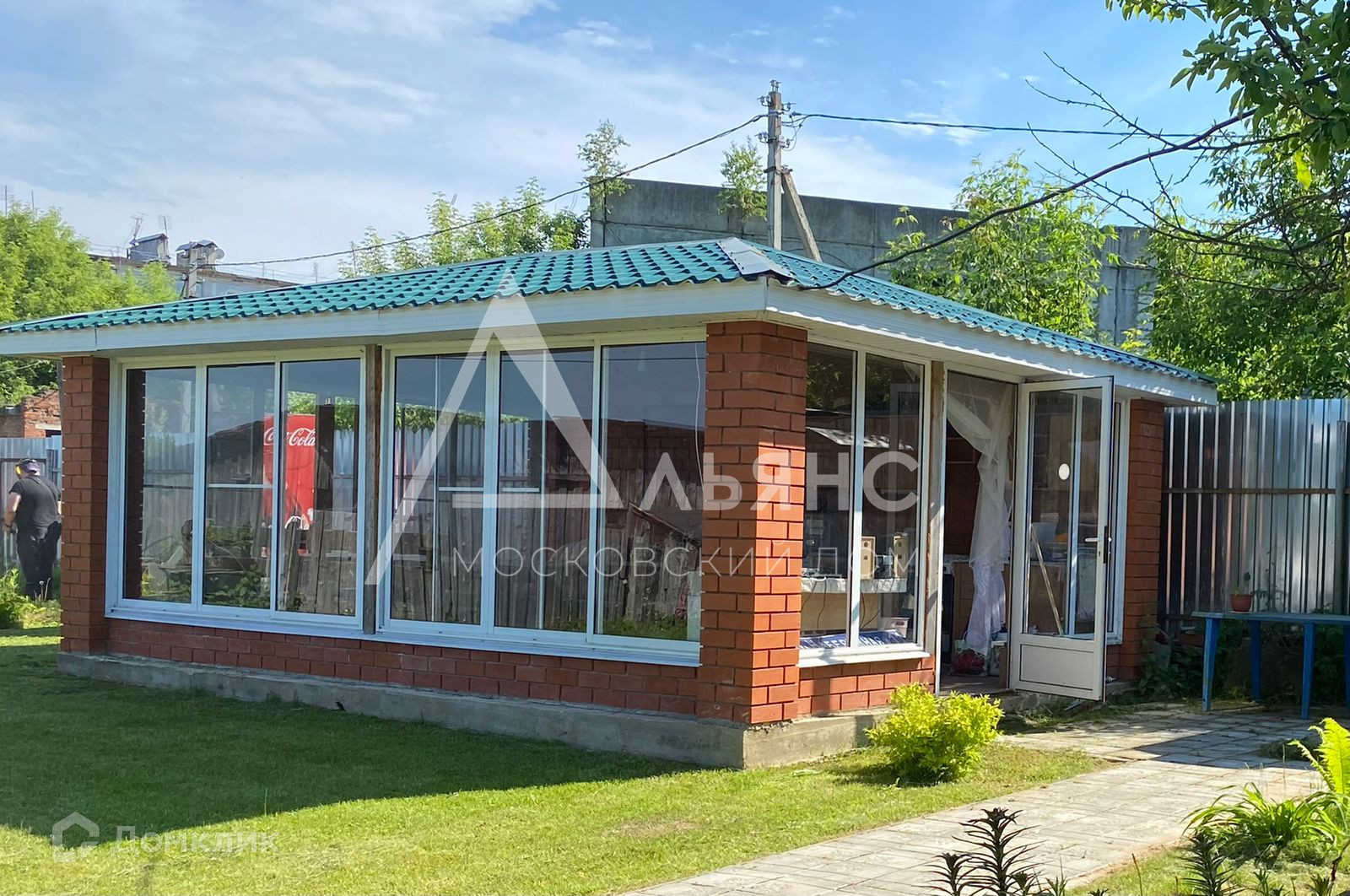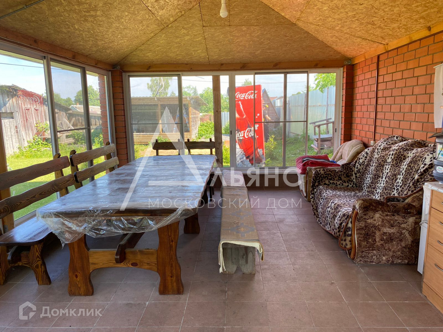 На участке построена летняя застекленная беседка со мебелью из массива, для праздников и летних посиделок.
