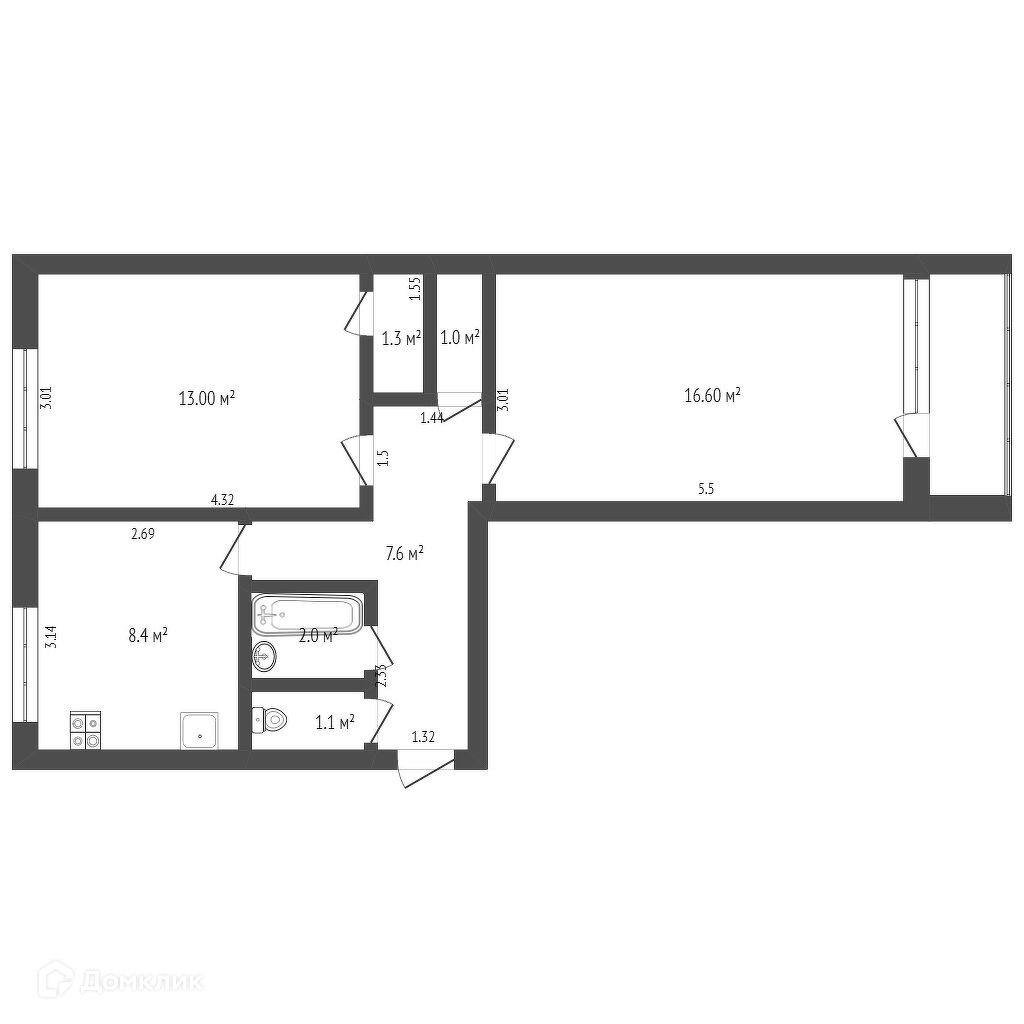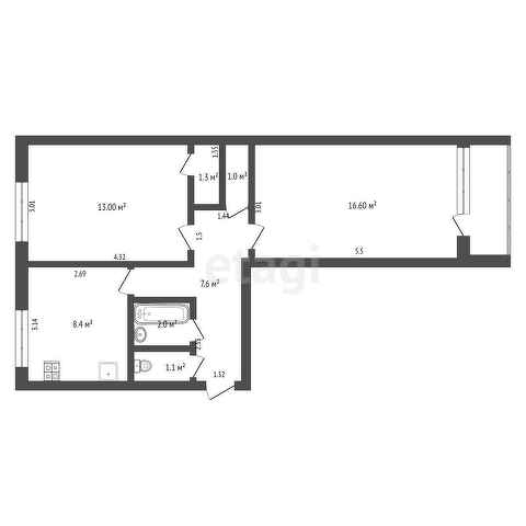 Общая площадь 51 м2