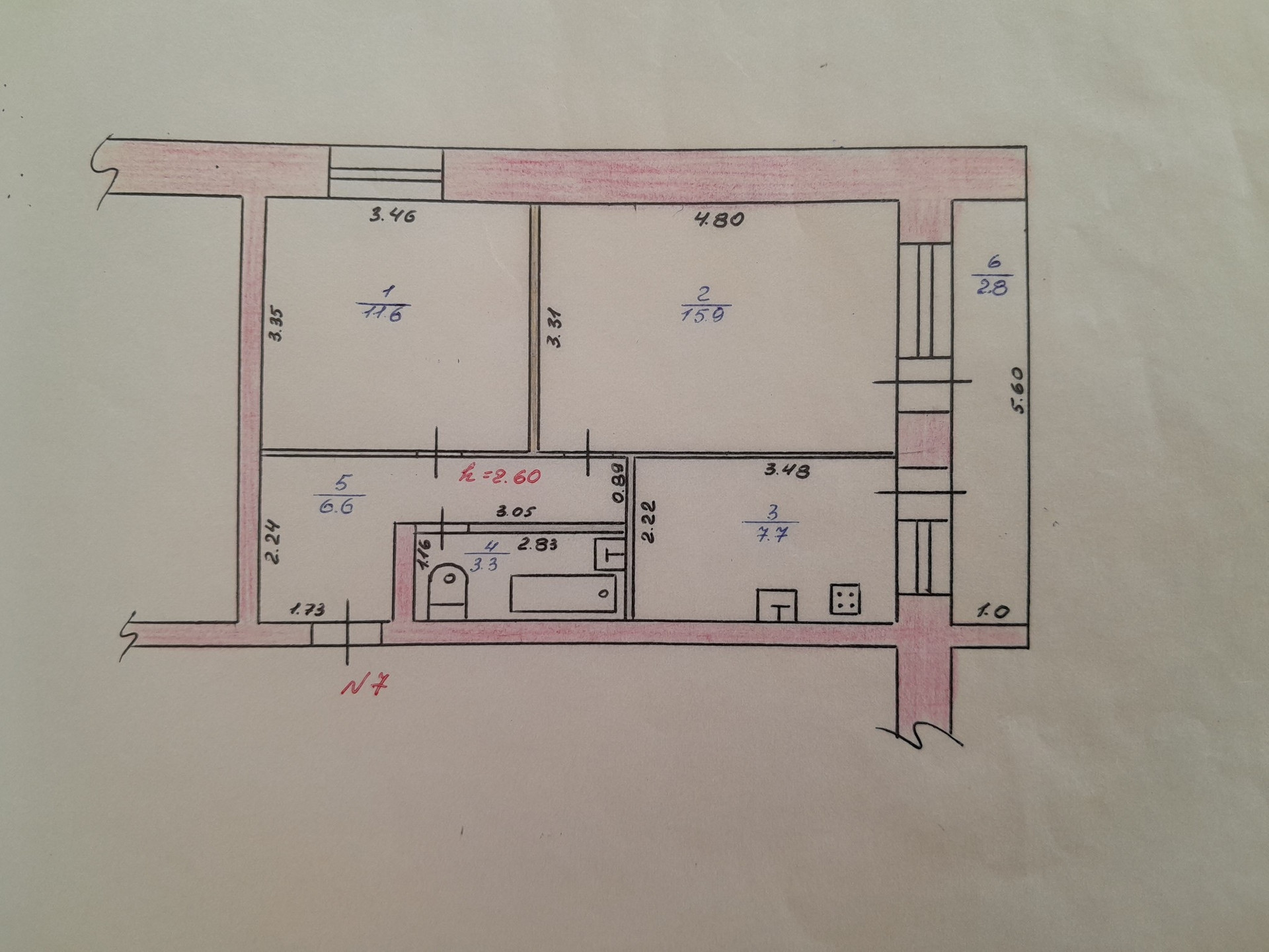 Высота потолков 2.6 м