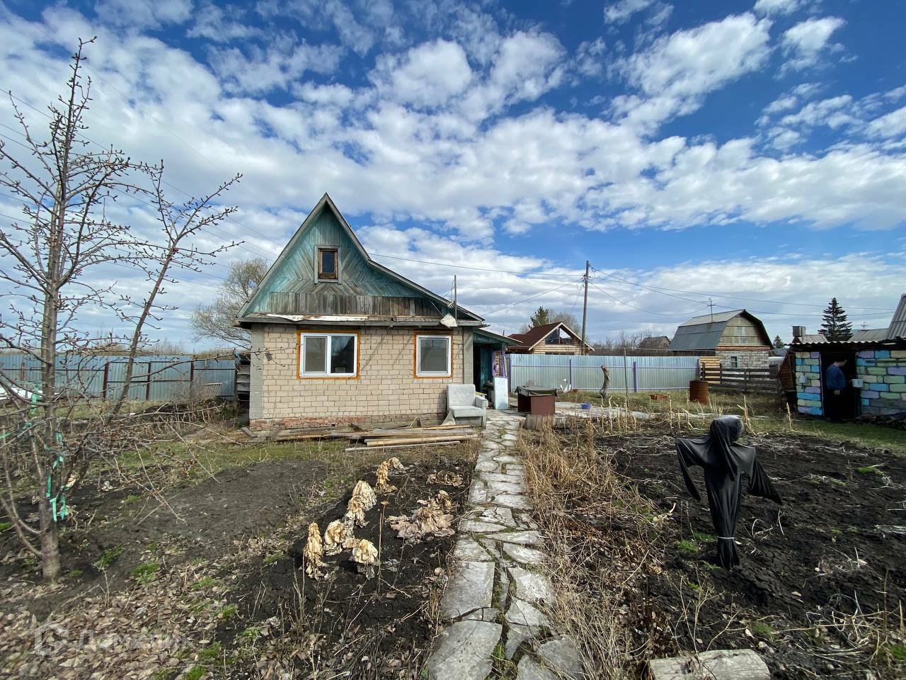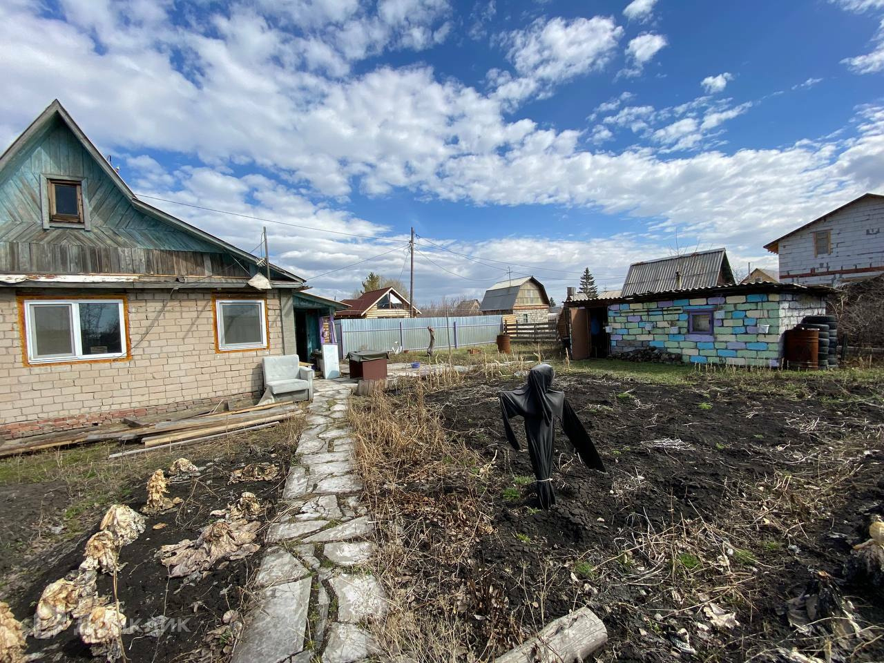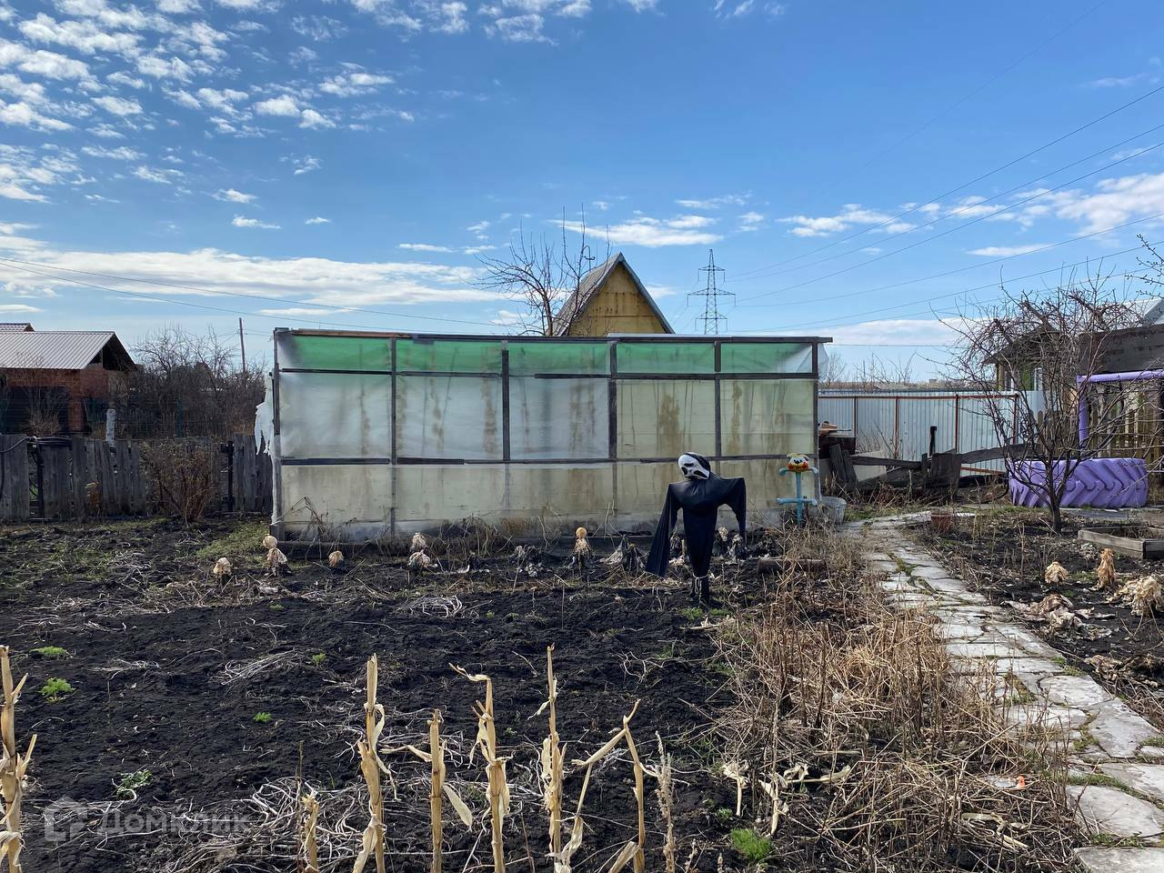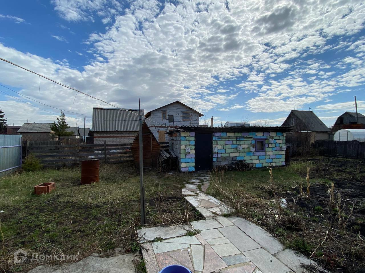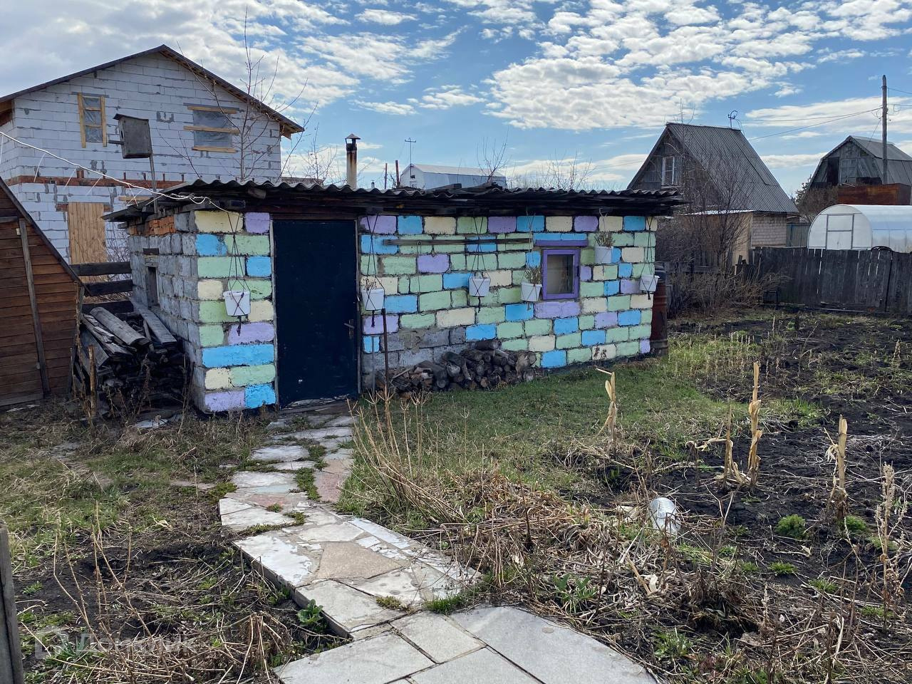 Забор 57 метров из профнастила. Домик 2 этажа , туалет уличный, теплица. Есть помещение отдельное, раньше была баня.