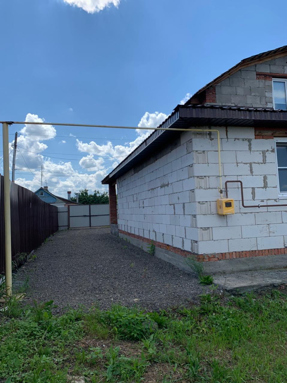 Центральное водоснабжение, газ, электричество, канализация. Пеноблок в два слоя, пристрой из газоблока. Фундамент из блока ФБС.