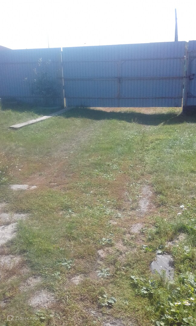 Огорожен по всему периметру забором из профнастила. С фасадной части - двое въездных ворот: во двор и в гараж. Широкая калитка.