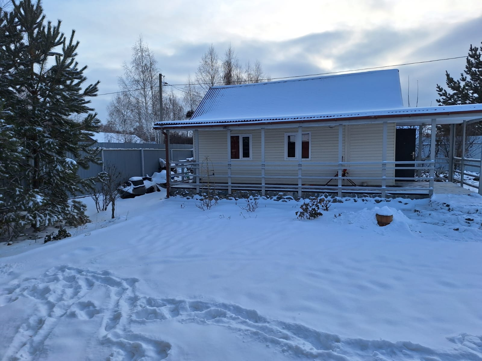 Дом 35кв.м. каркас, снаружи обшит сайдингом, внутри фальш.брусом, имеется сан узел, стиральная машинка, отопление электрическое, вода,. К дому пристроена терраса 18кв.м