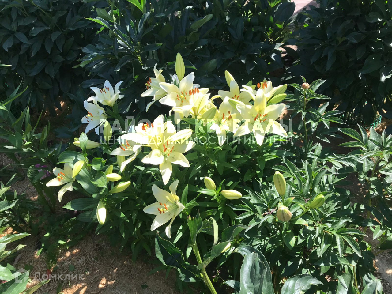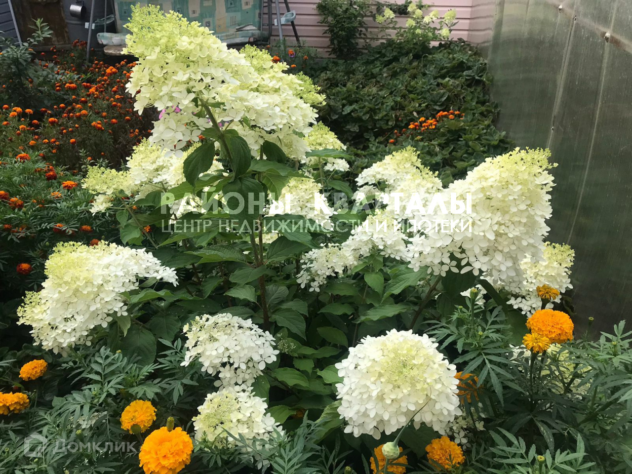+ клумбы с пионами, лилии, гортензии;