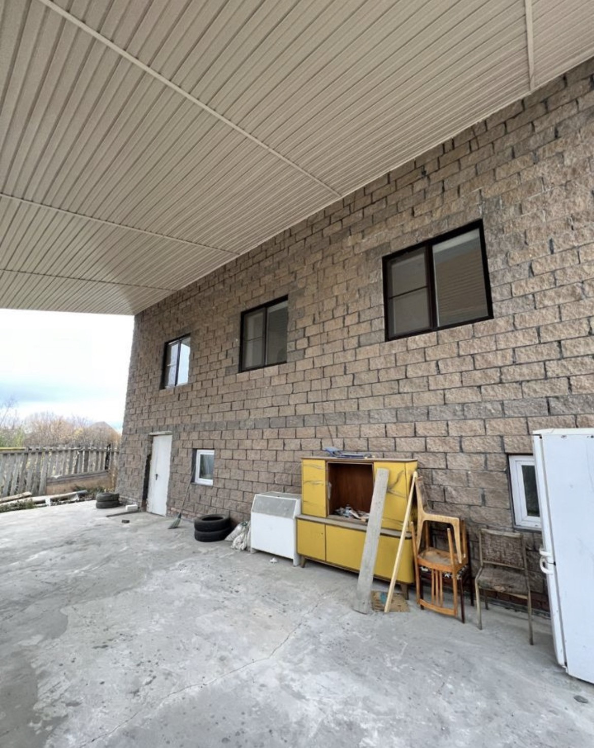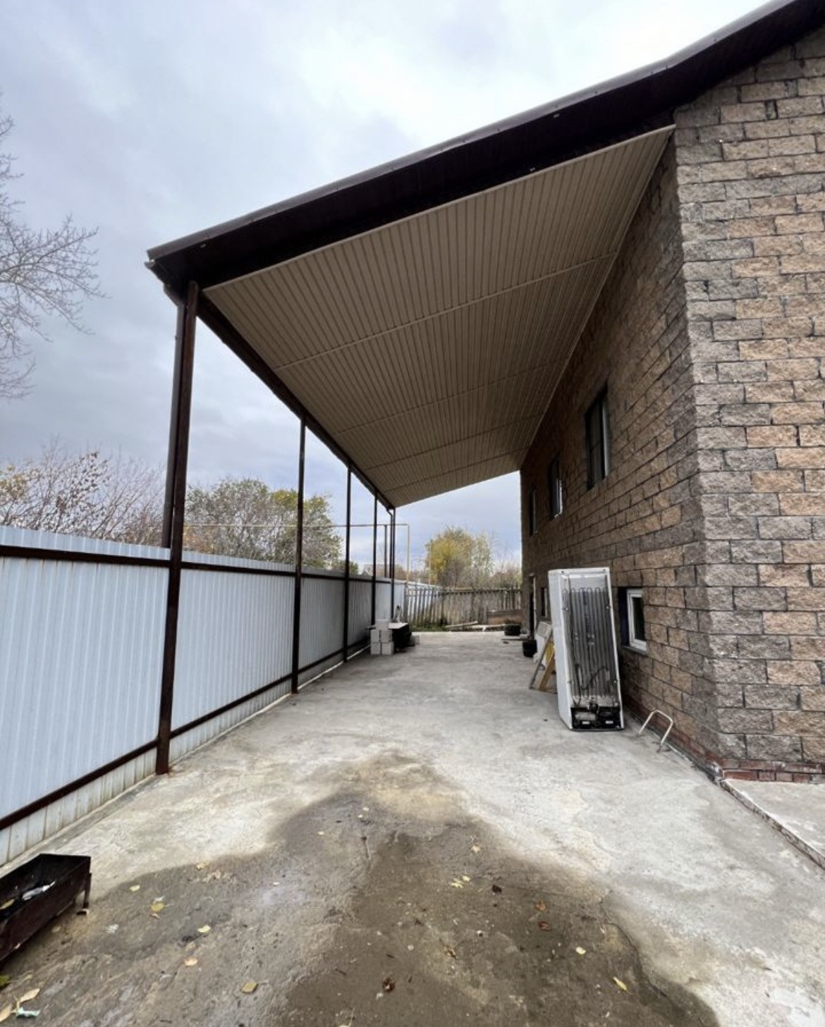 Участок вокруг дома, в том числе под навесом полностью залит бетоном!