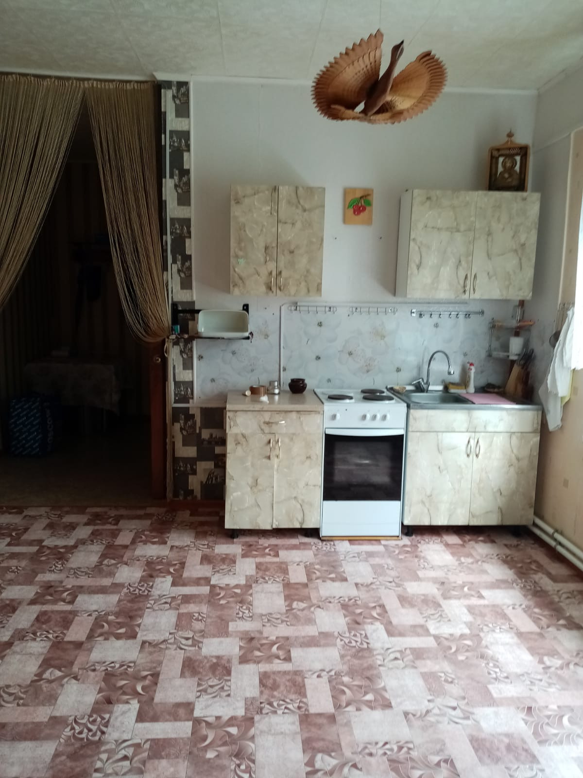 в доме остается мебель: кухонный гарнитур, стенка, шкаф-купе,кровать, плита, стол.