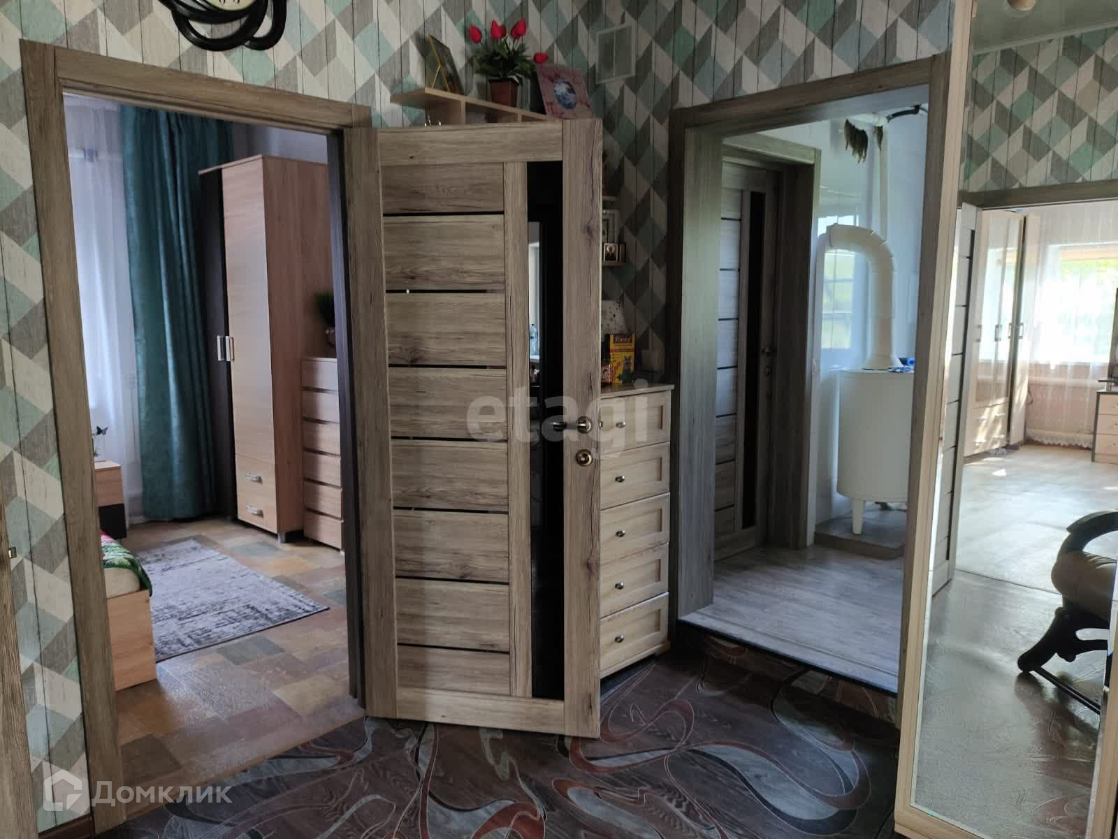• Наклеены обои.