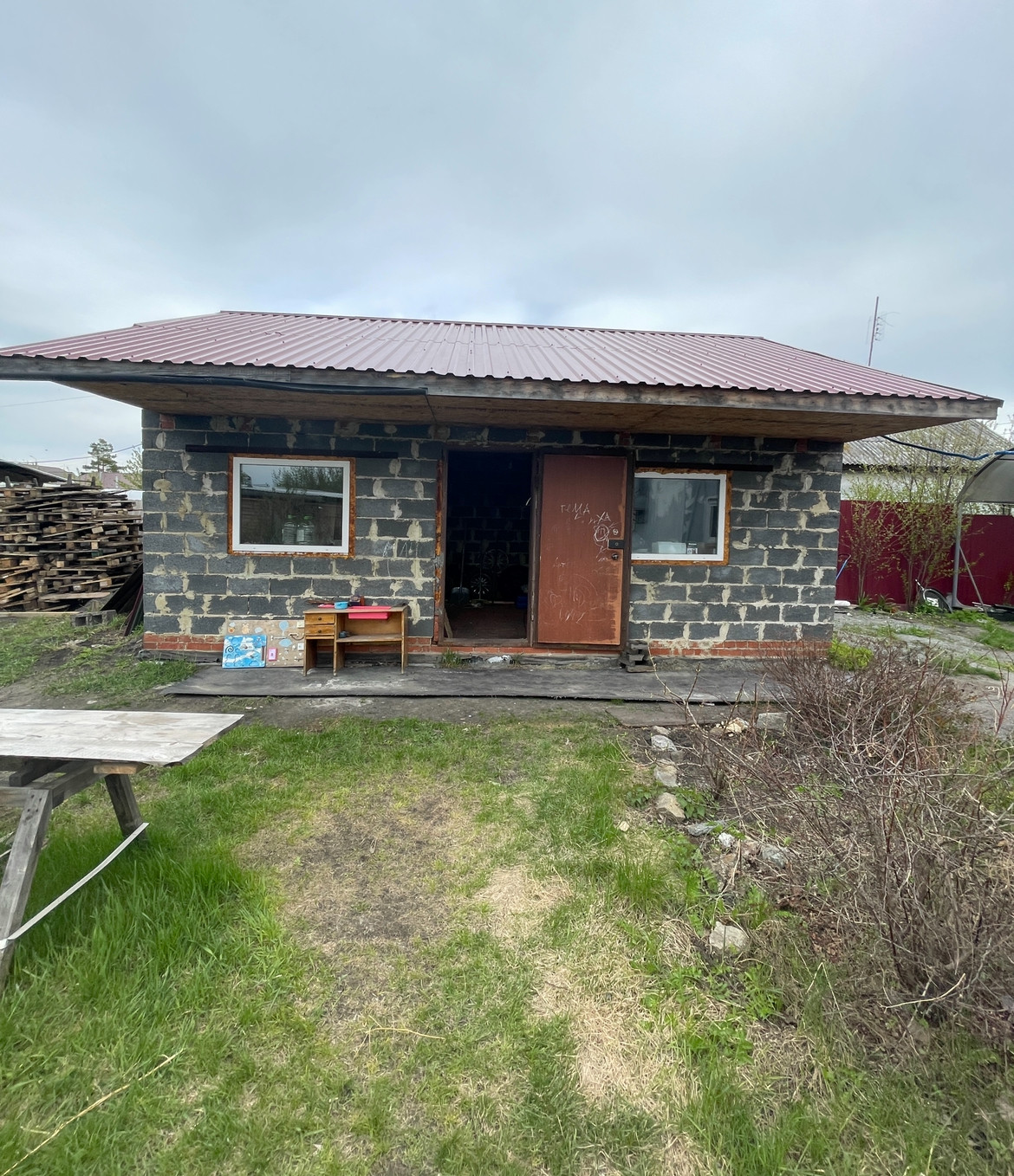 Дом построен из шлакоблока на фундаменте.