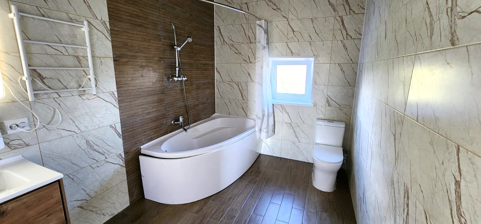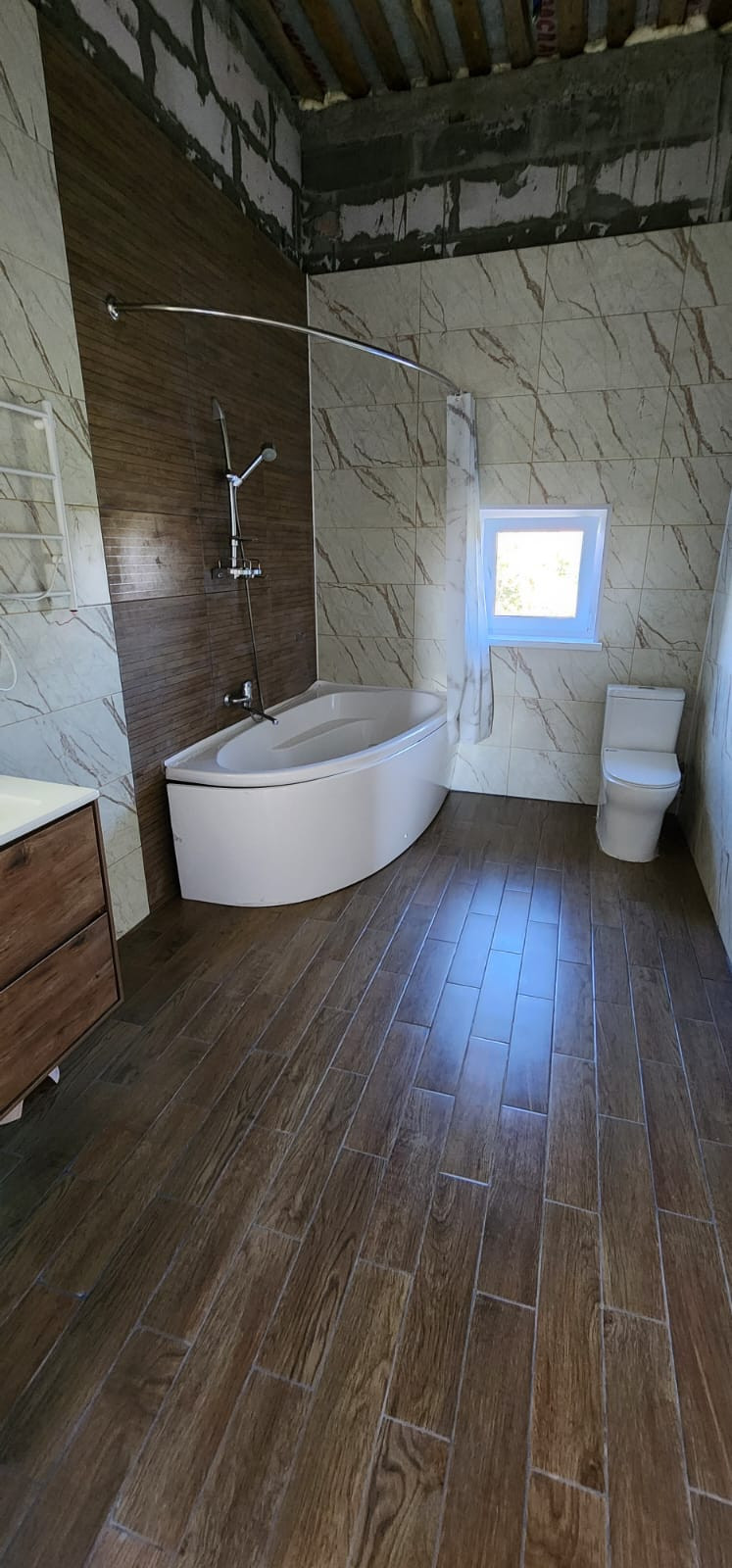По всей площади теплый пол, дорогие евроокна, кафель , сантехника.