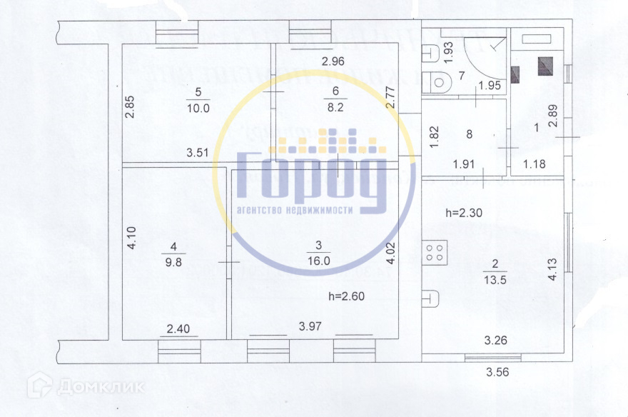 В доме 4 комнаты 16, 10, 10 и 9 кв.м., кухня 13.5 кв.м., совмещенный сан. узел.