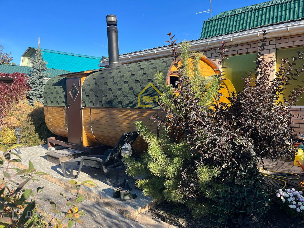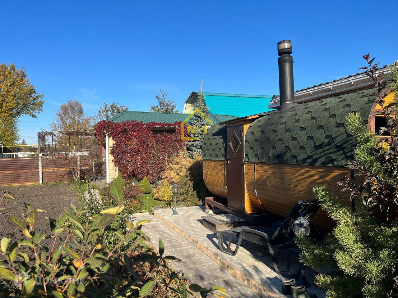 Во дворе дома уютная беседка для отдыха, мангальная зона , лавка - качели . Новая баня -бочка . Большой хозблок из кирпича. Двор полностью выложен плиткой.