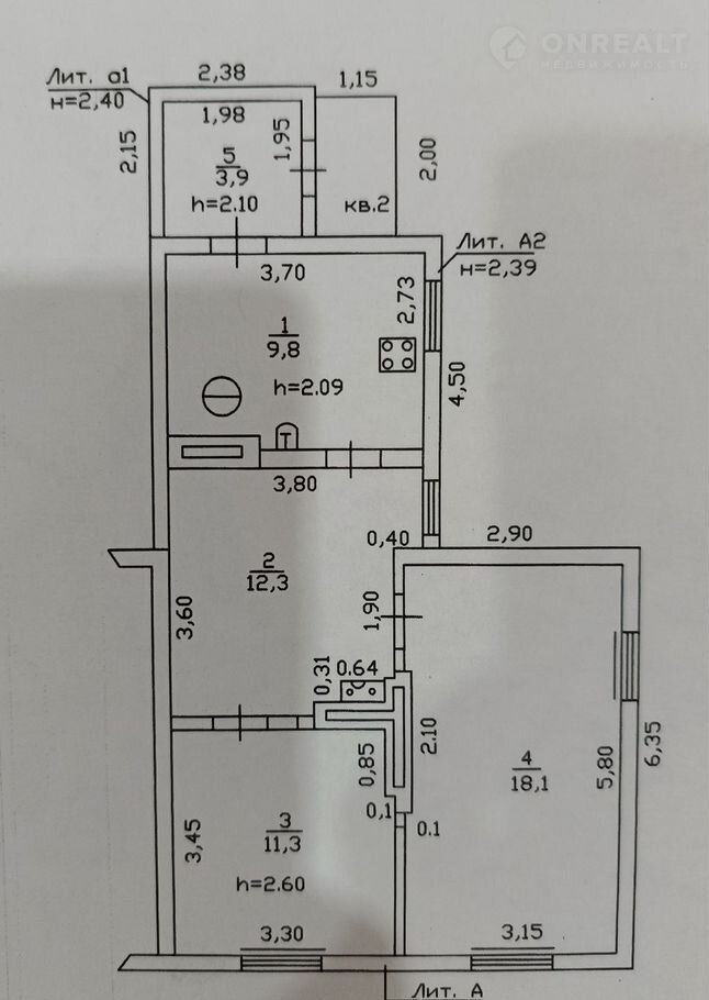 Общая площадь 55.4 м2