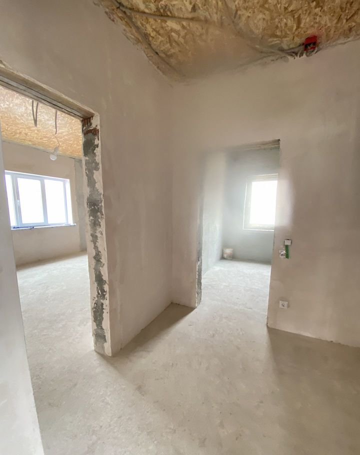 Предчистовая отделка выполнена профессионально, полы залиты ровным слоем стяжки.