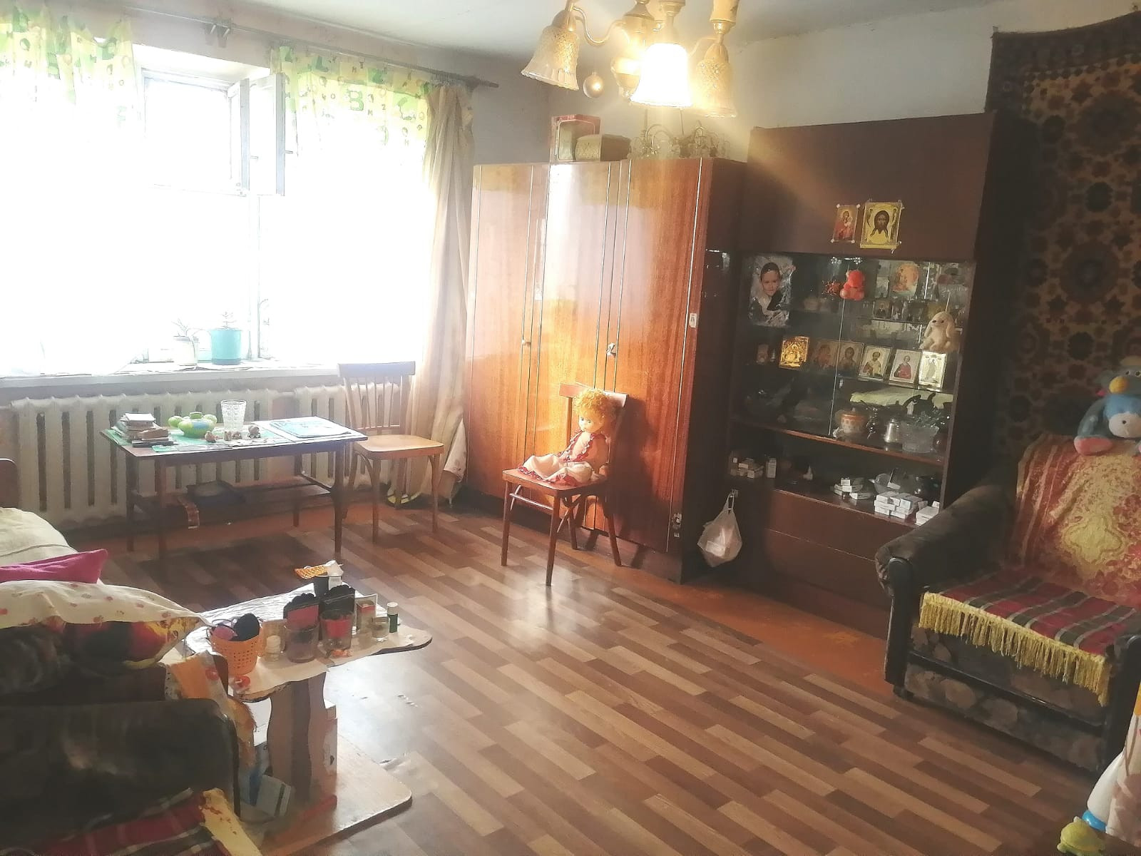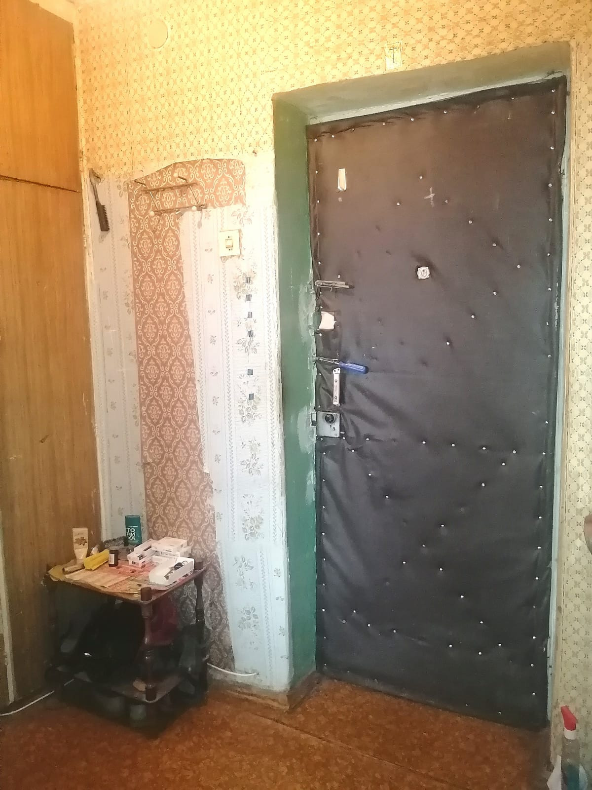 В квартире хорошая железная входная дверь, окна деревянные, балкон- обычное остекление, счётчики на горячую и холодную воду!