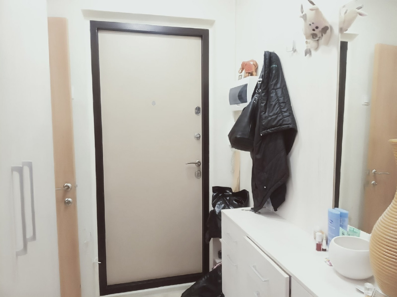 В квартире выполнен ремонт в современном стиле: натяжные потолки, ламинат, межкомнатные двери, новая сантехника.