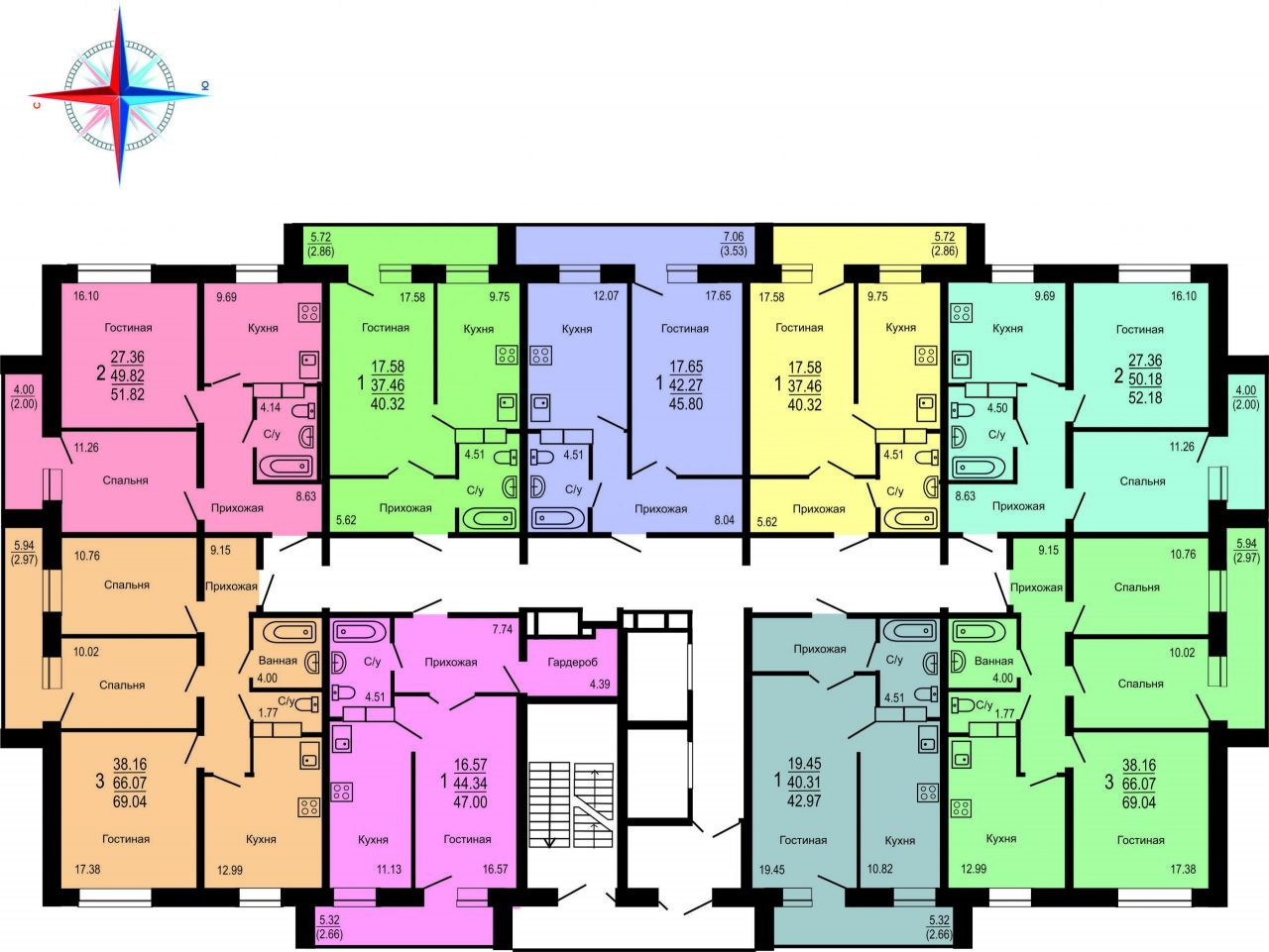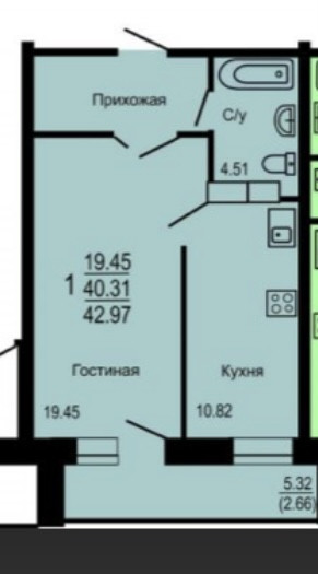 Общая площадь 42.9 м2