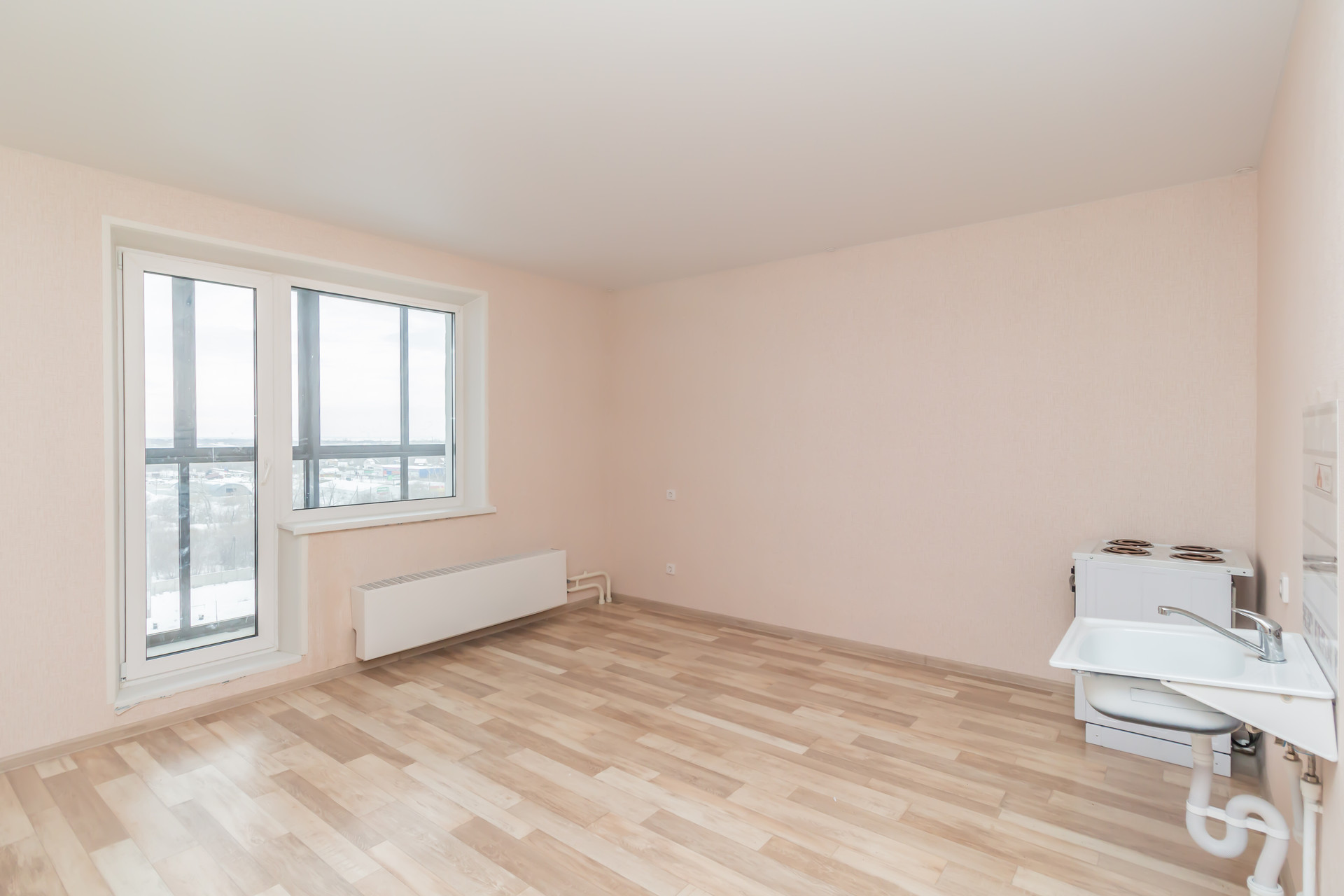В квартире был сделан качественный ремонтот застройщика: на полу линолеум везде, кроме санузла, стены выровнены и оклеены обоями компакт - винил в светлых тонах,