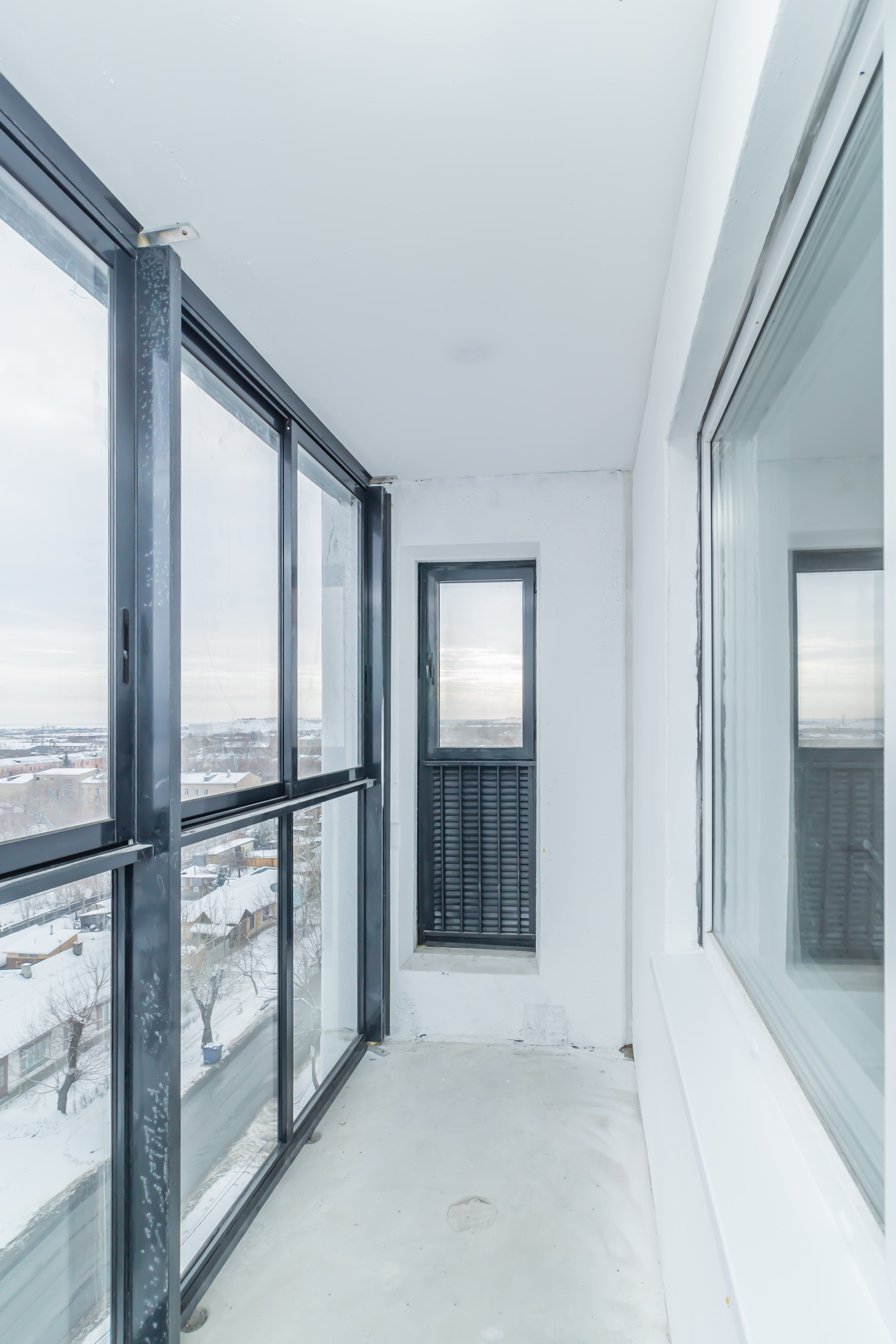матовые натяжные потолки, межкомнатные двери, евроокна и застекленная лоджия, в санузле на полу кафель,