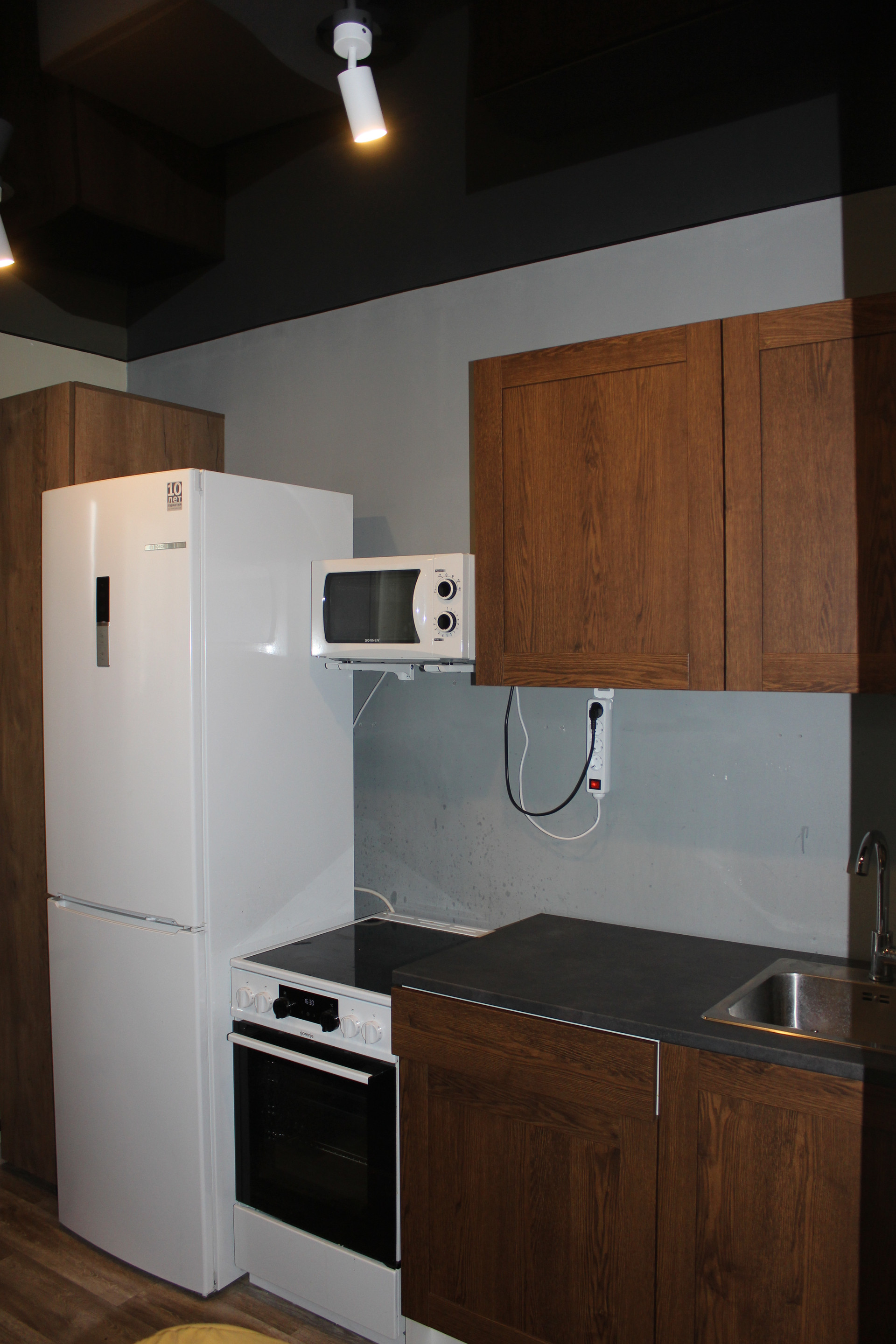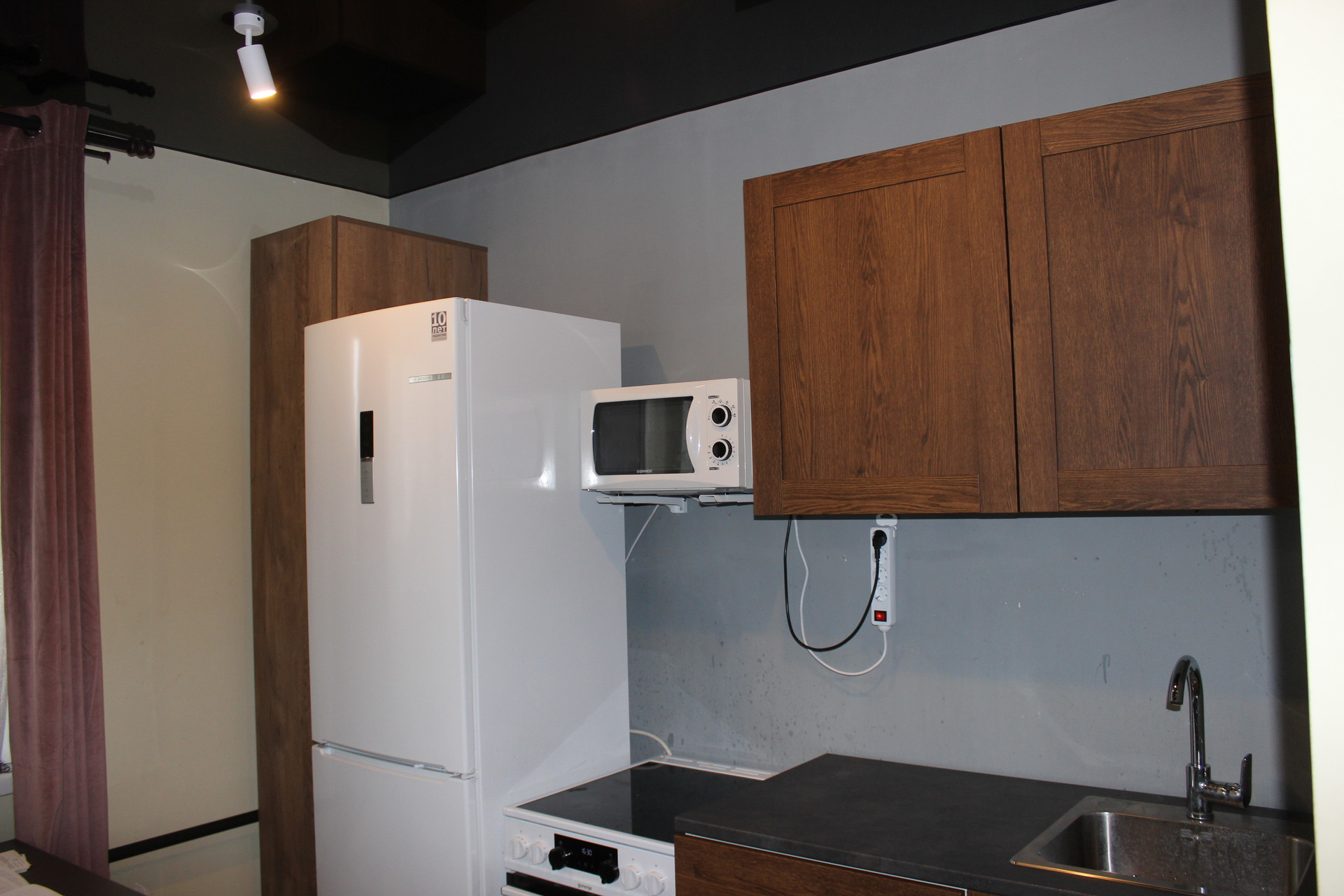 В квартире остаётся качественный кухонный гарнитур с эл.плитой и микроволновкой.