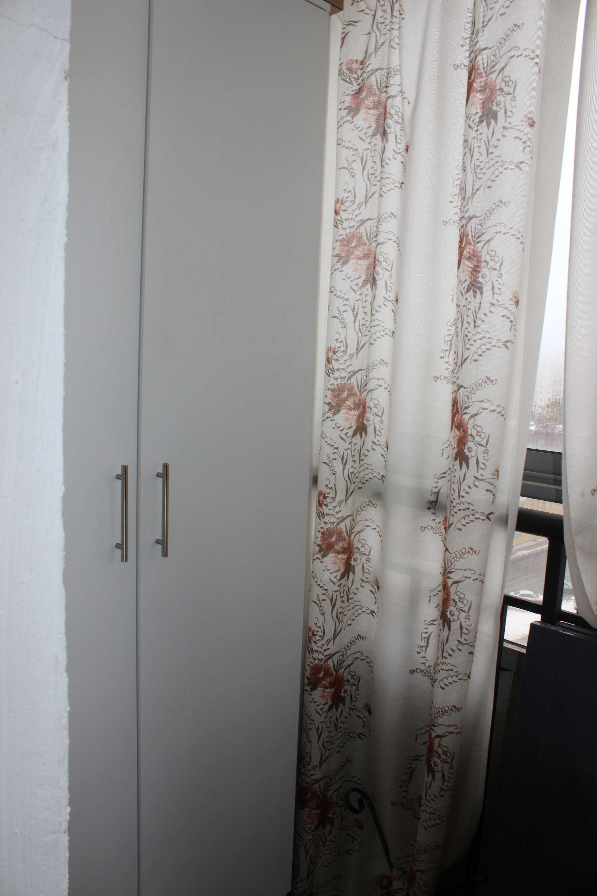 На огромной лоджии остаётся качественный белый шкаф «Икеа».
