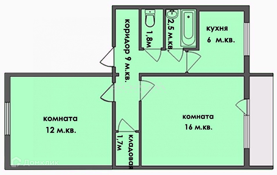 Предлагаем Вашему вниманию полнометражную 47м2  двухкомнатную квартиру "брежневку" :