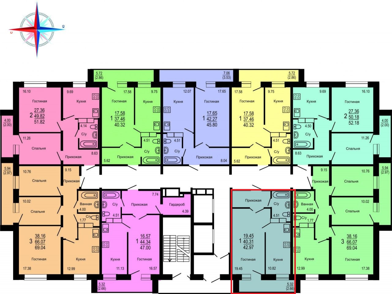 Общая площадь 42.97 м2