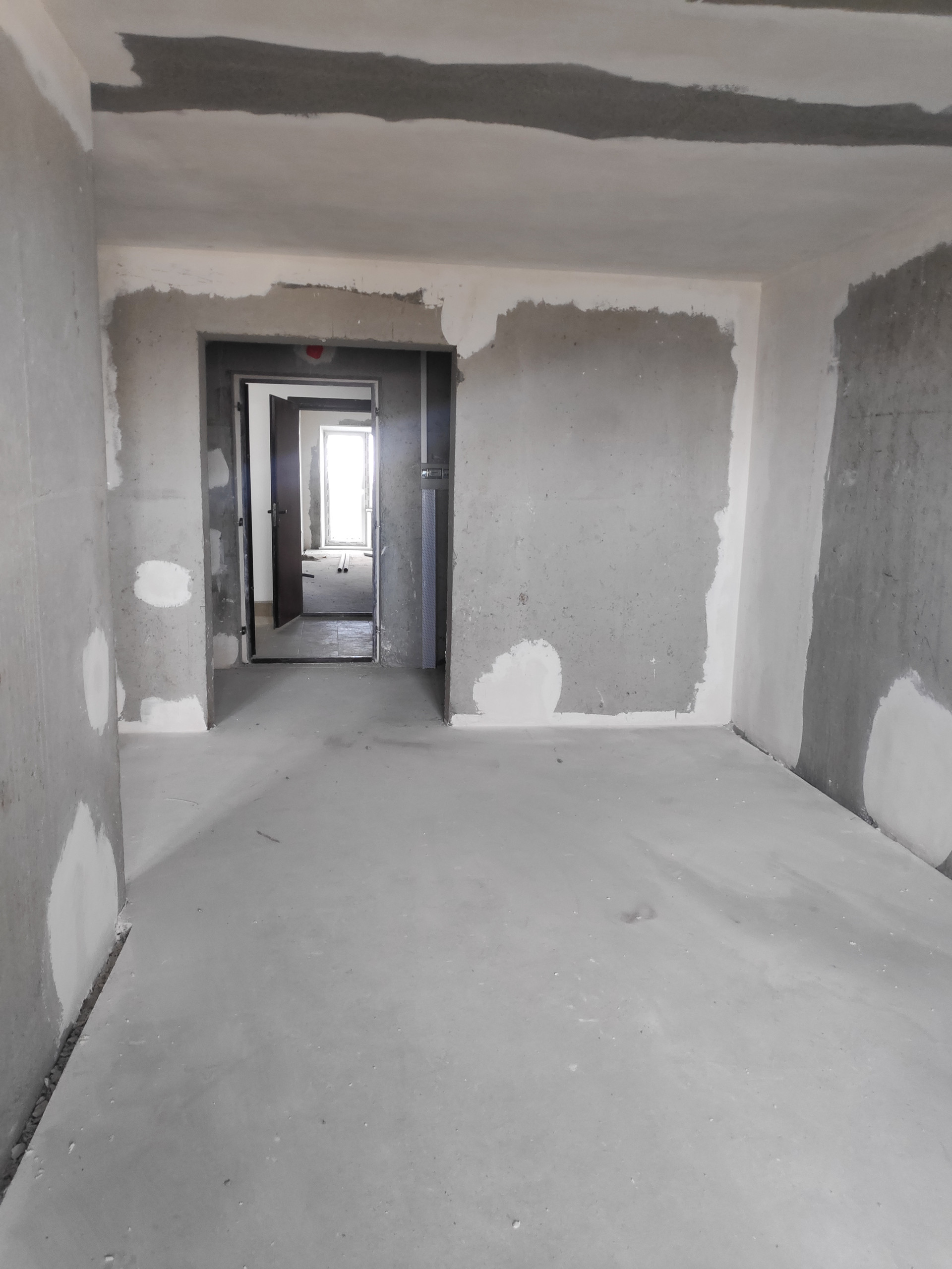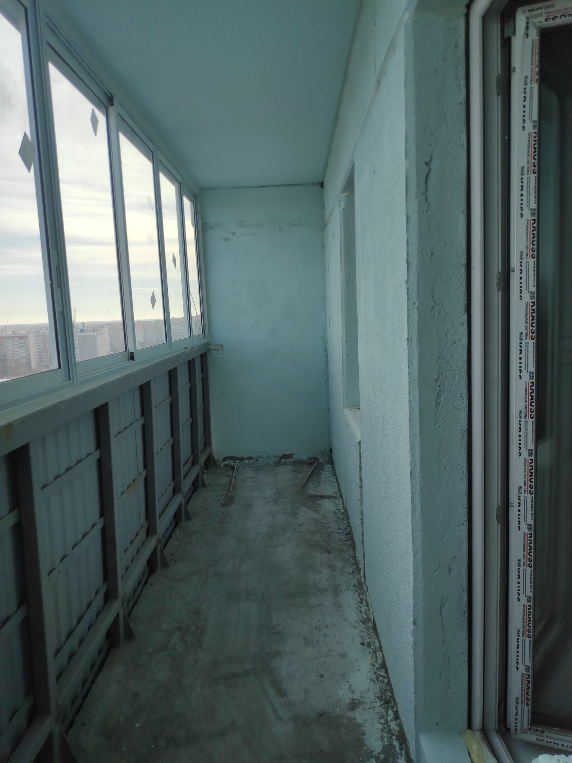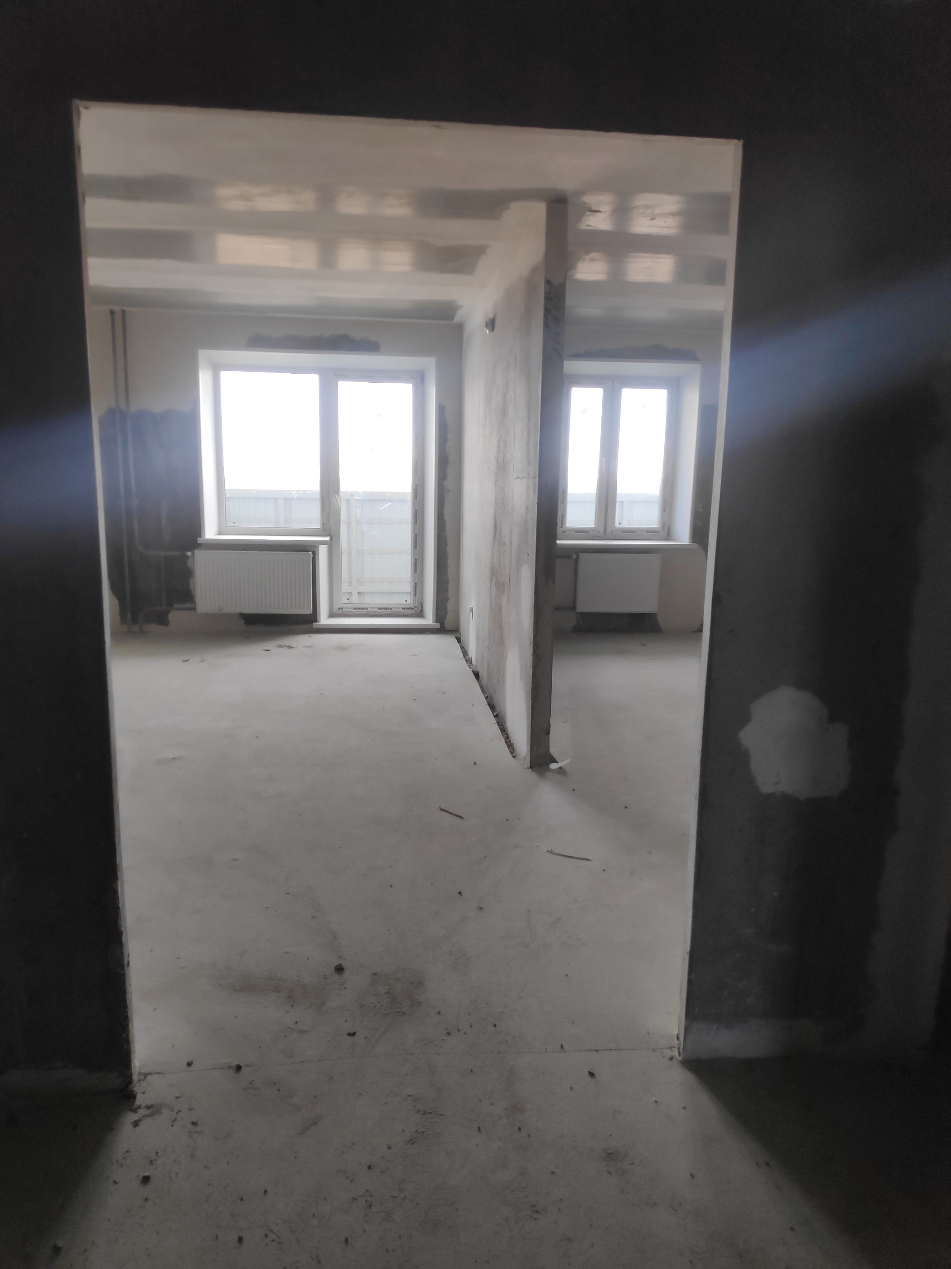 Отделка предчистовая: Стены и потолки - монтажные стыки и швы примыкания сборных железобетонных конструкций заполнены бетоном, оштукатурены. Шпатлевание железобетонных поверхностей стен и потолков - не производится. Электроразводка выполнена, разводка воды выполнена до точек подключения (без установки сантехники), окна из ПВХ профилей, лоджии с витражным одинарным остеклением, установлены радиаторы с терморегуляцией.