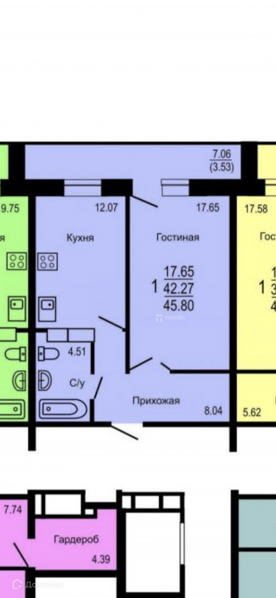 Общая площадь 42.97 м2