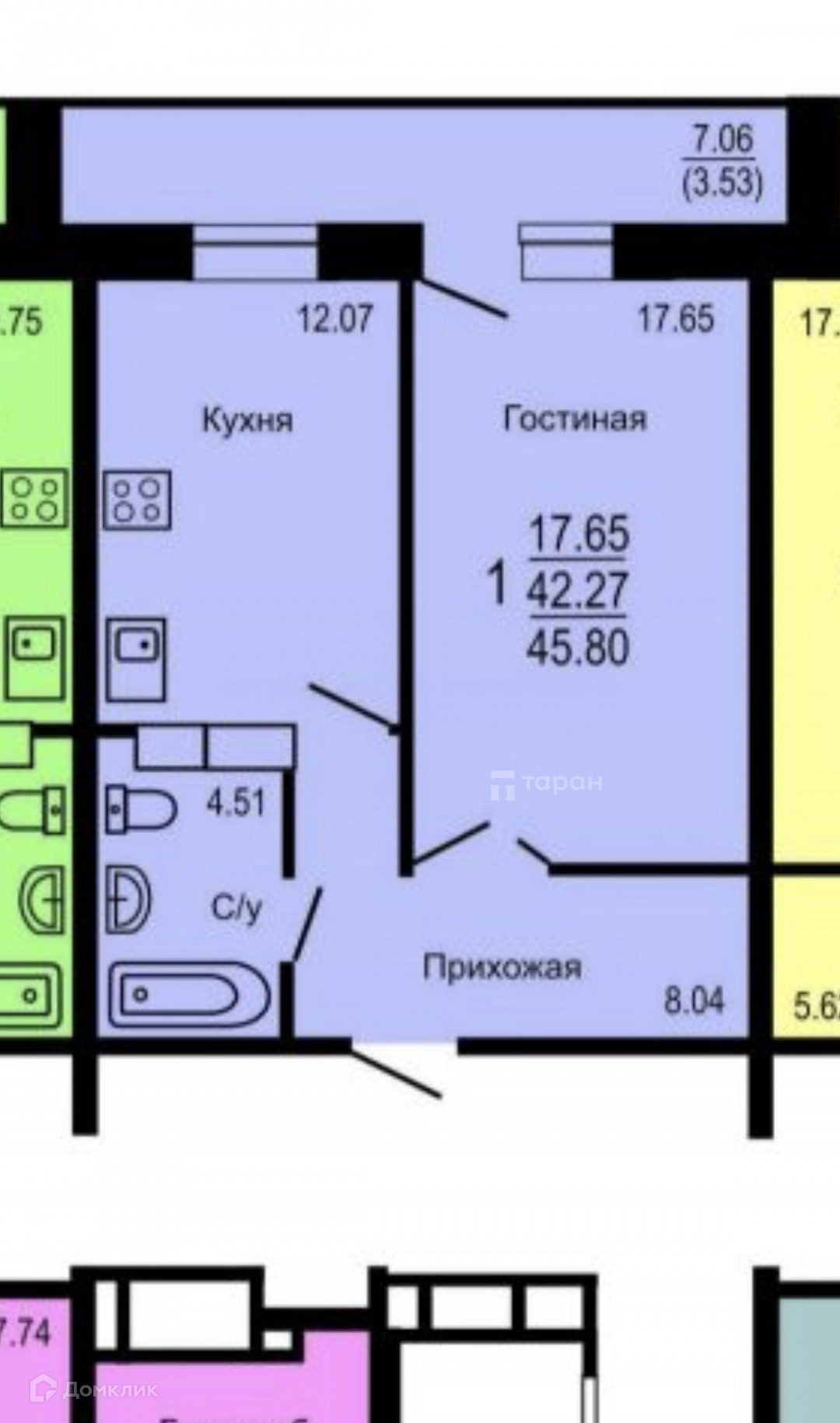Общая площадь 45.8 м2