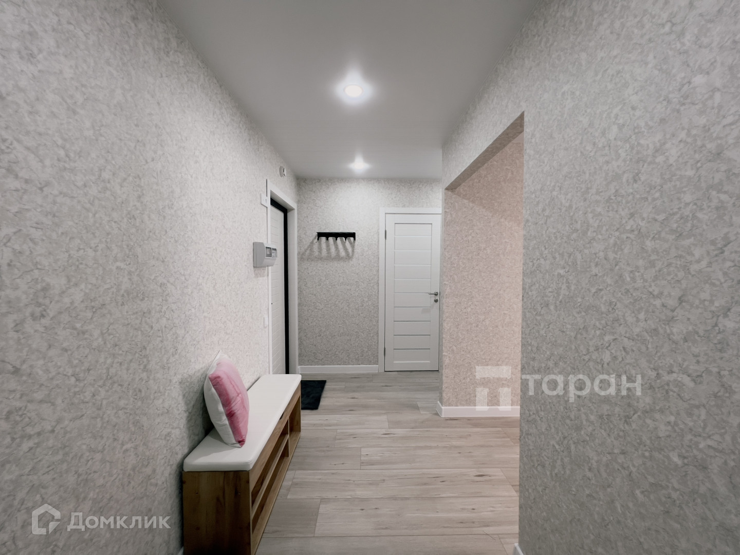 В квартире выполнен качественный ремонт: на полу ламинат 33 класса, обои приятных пастельных тонов, натяжные потолки со встроенными светильниками, пластиковые двухкамерные стеклопакеты, межкомнатные царговые двери, в сан. узле на полу кафель, стены отделаны панелями, установлена качественная сан. техника, новая металлическая входная дверь.