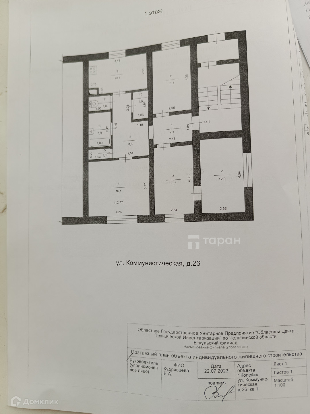 4-комнатная квартира, 82.5 м2, этаж 1 / 2, на продажу в Копейске, Коммунистическая улица, 26