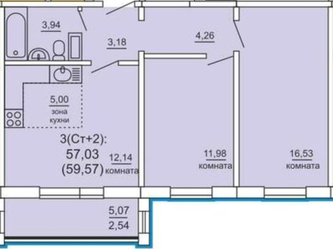 Общая площадь 59 м2