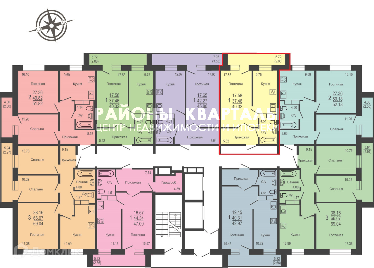 Общая плoщадь квapтиры c учетом коэффициента лoджии -  40,32 кв.м., площaдь квартиры – 37,3 кв.м., комната: 17,5 кв.м, кухня 9,75 кв.м., санузел совмещен, 4,5 кв.м., в коридоре место под большую гардеробную.