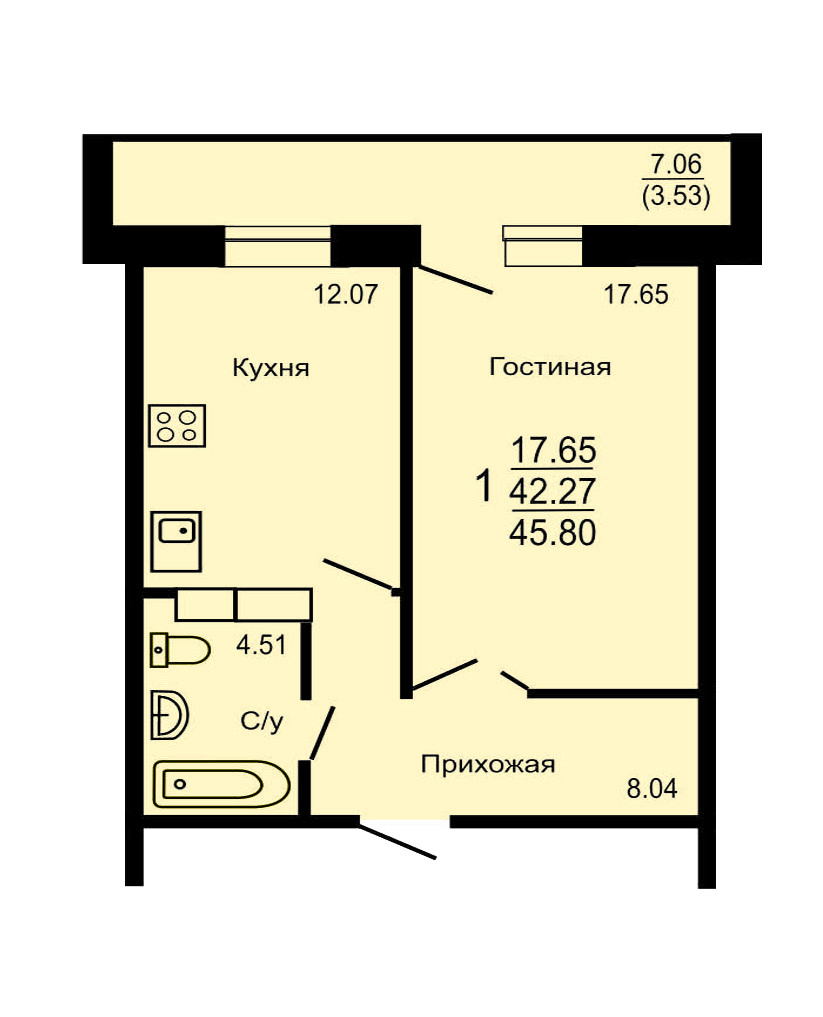 Общая площадь 42.6 м2