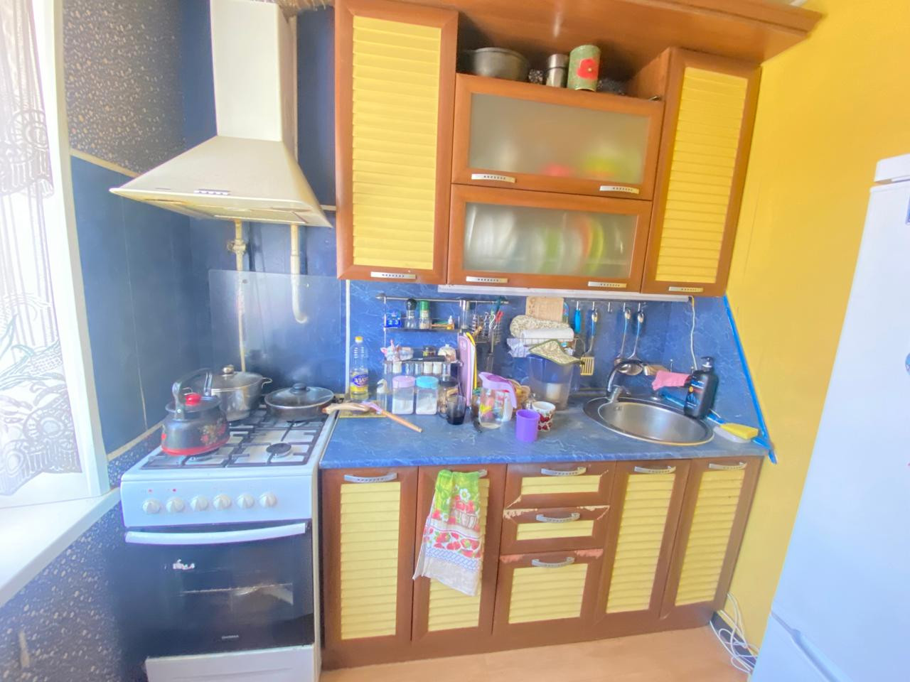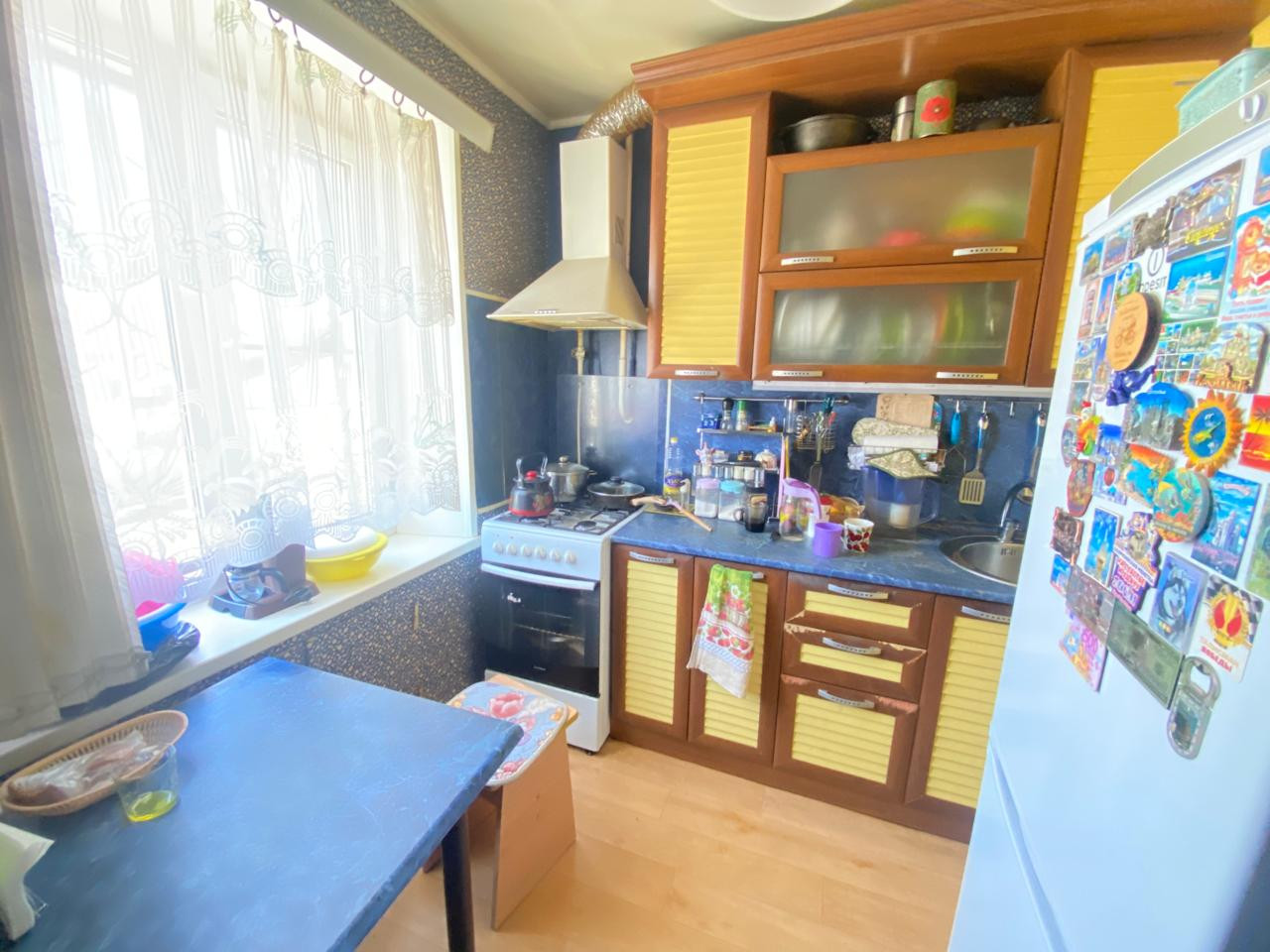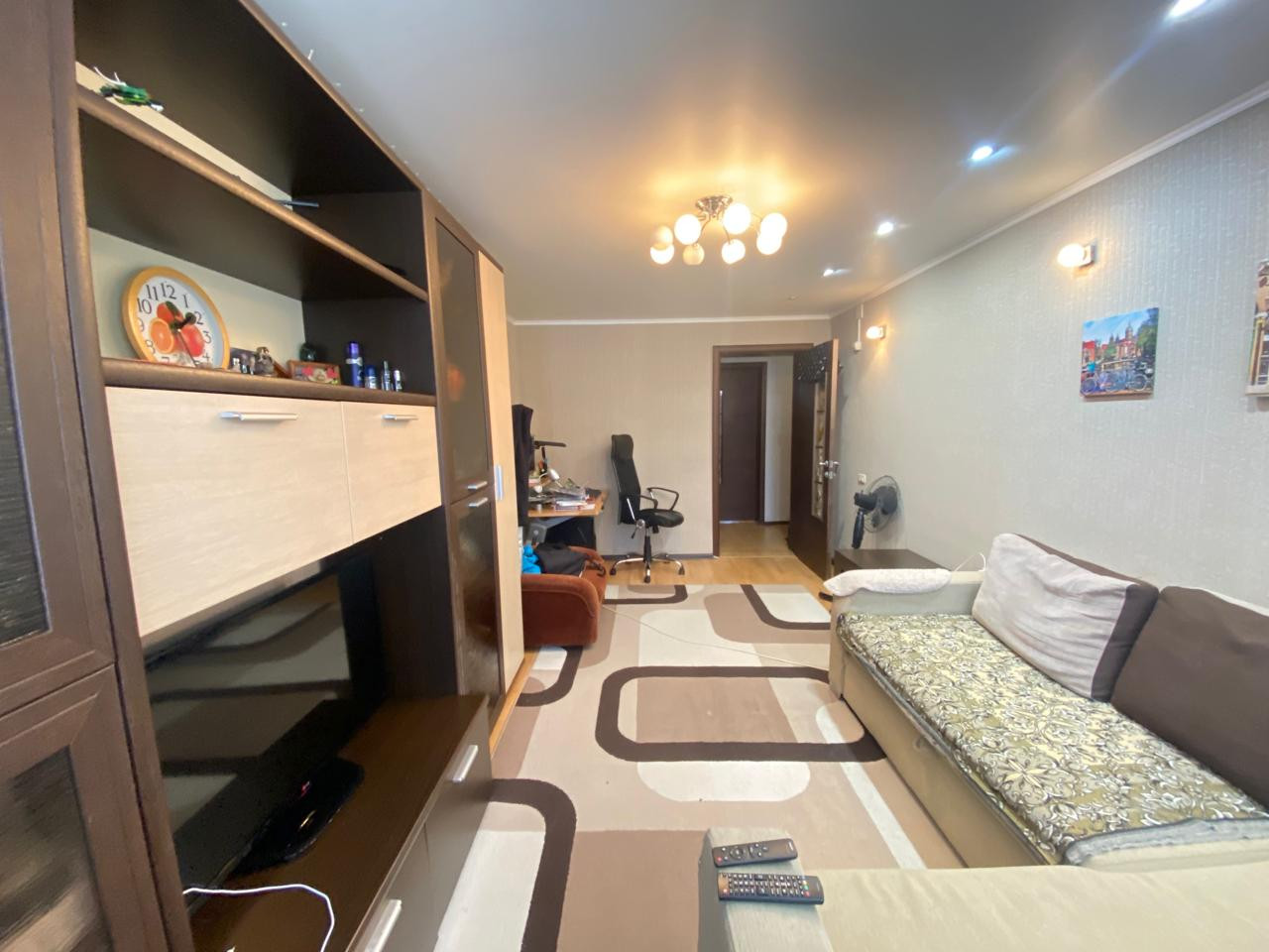 Квартира находится в хорошем состоянии: установлена металлическая входная дверь, межкомнатные двери, евроокна, натяжные потолки, пол - линолеум, просторные и светлые комнаты. Комнаты раздельные ,окна на разные стороны.