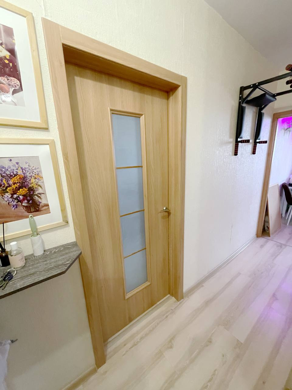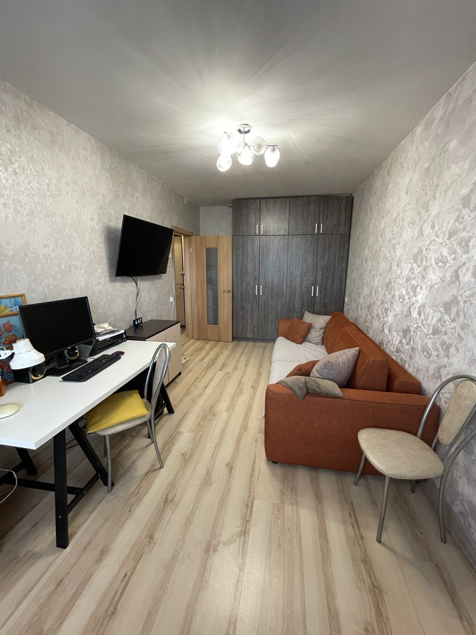 На полу –ламинат, новые обои в комнате, ванная комната оформлена кафелем, межкомнатные двери ламинированные, надежная входная дверь, евроокна, балкон имеет стеклопакет, обшит евровагонкой, заведено электричество.