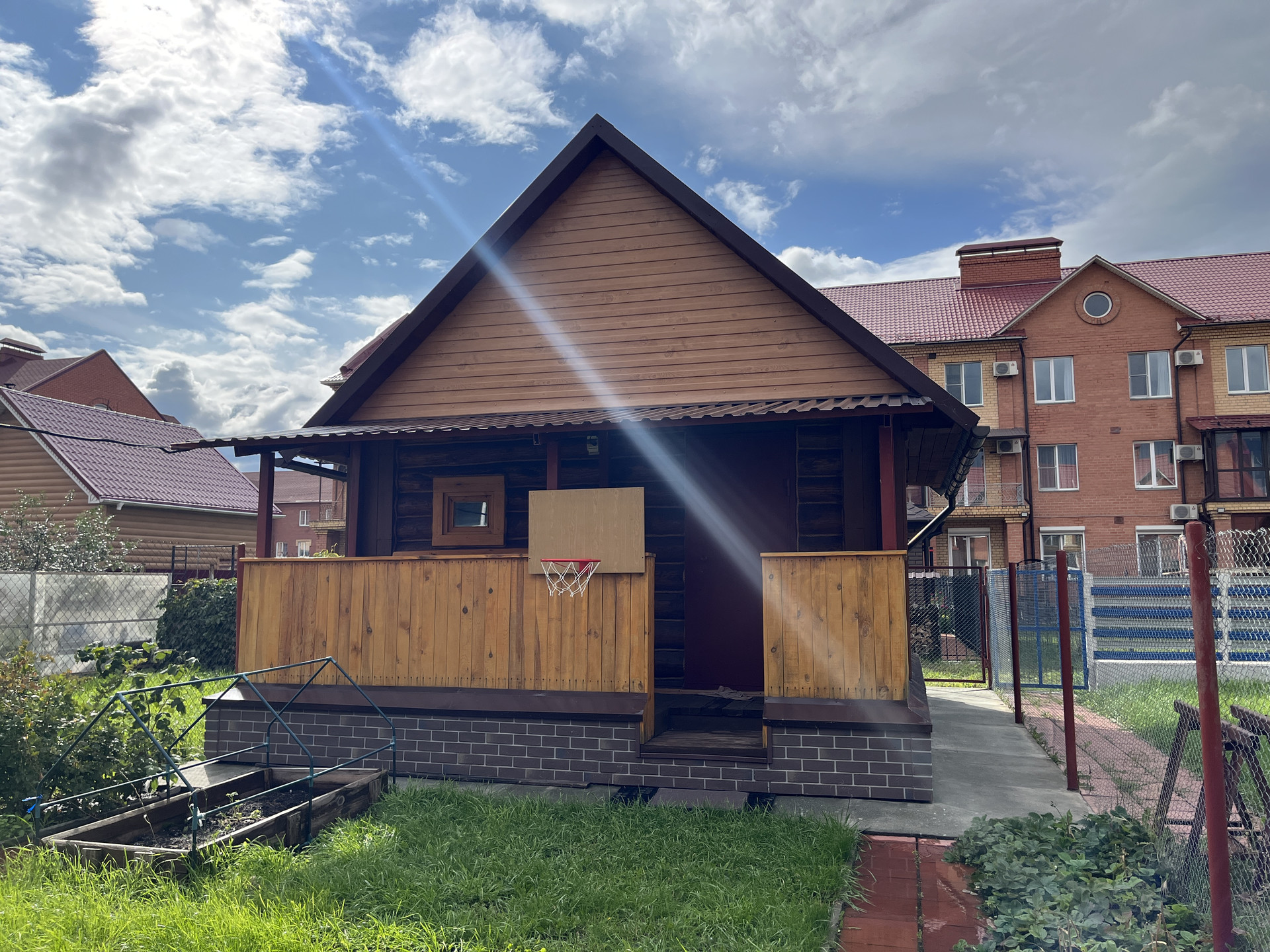 На придомовой территории баня из оцилиндрованного бруса. Строили качественно, основательно, в аккуратном использовании. все как новое.