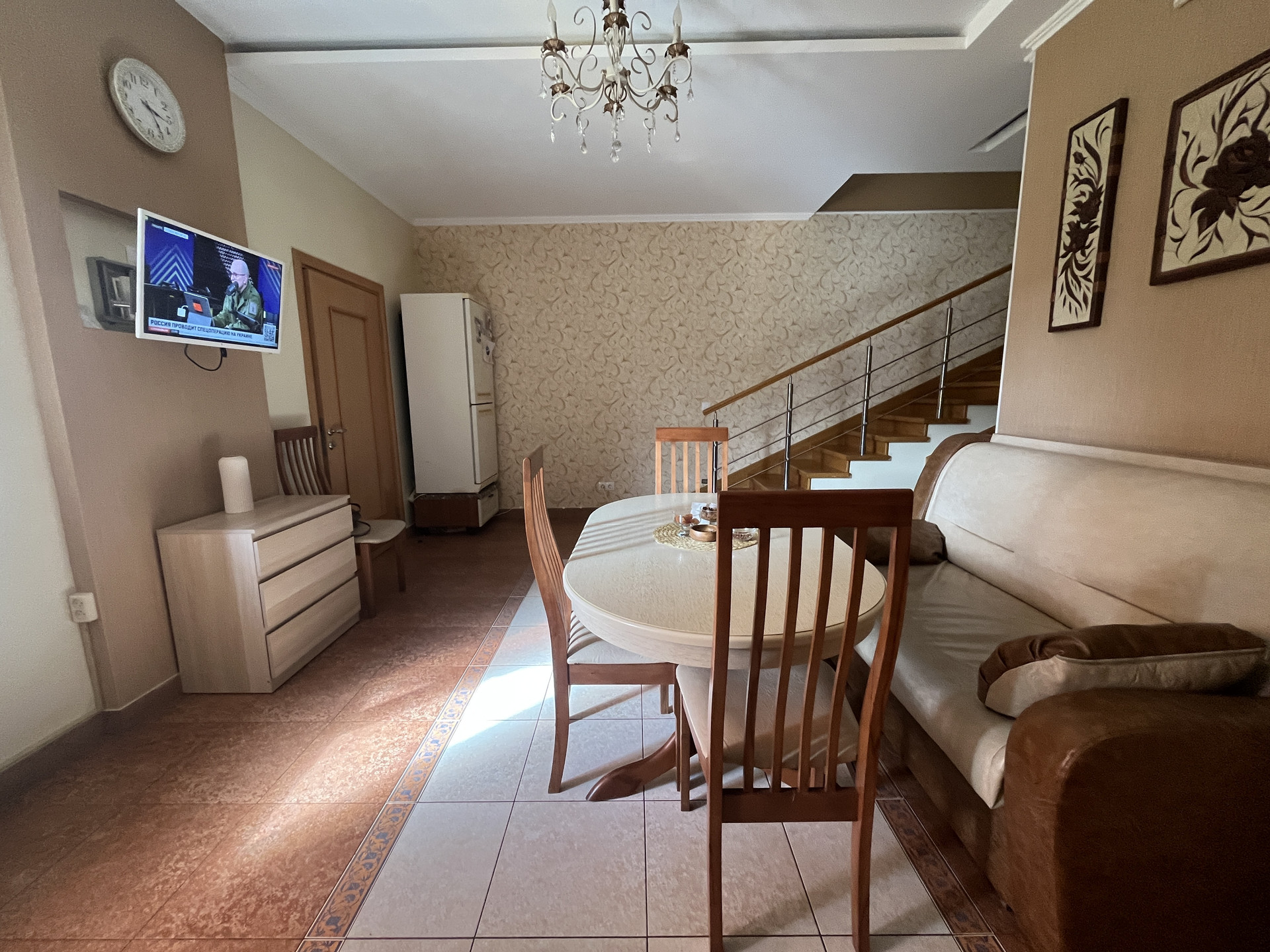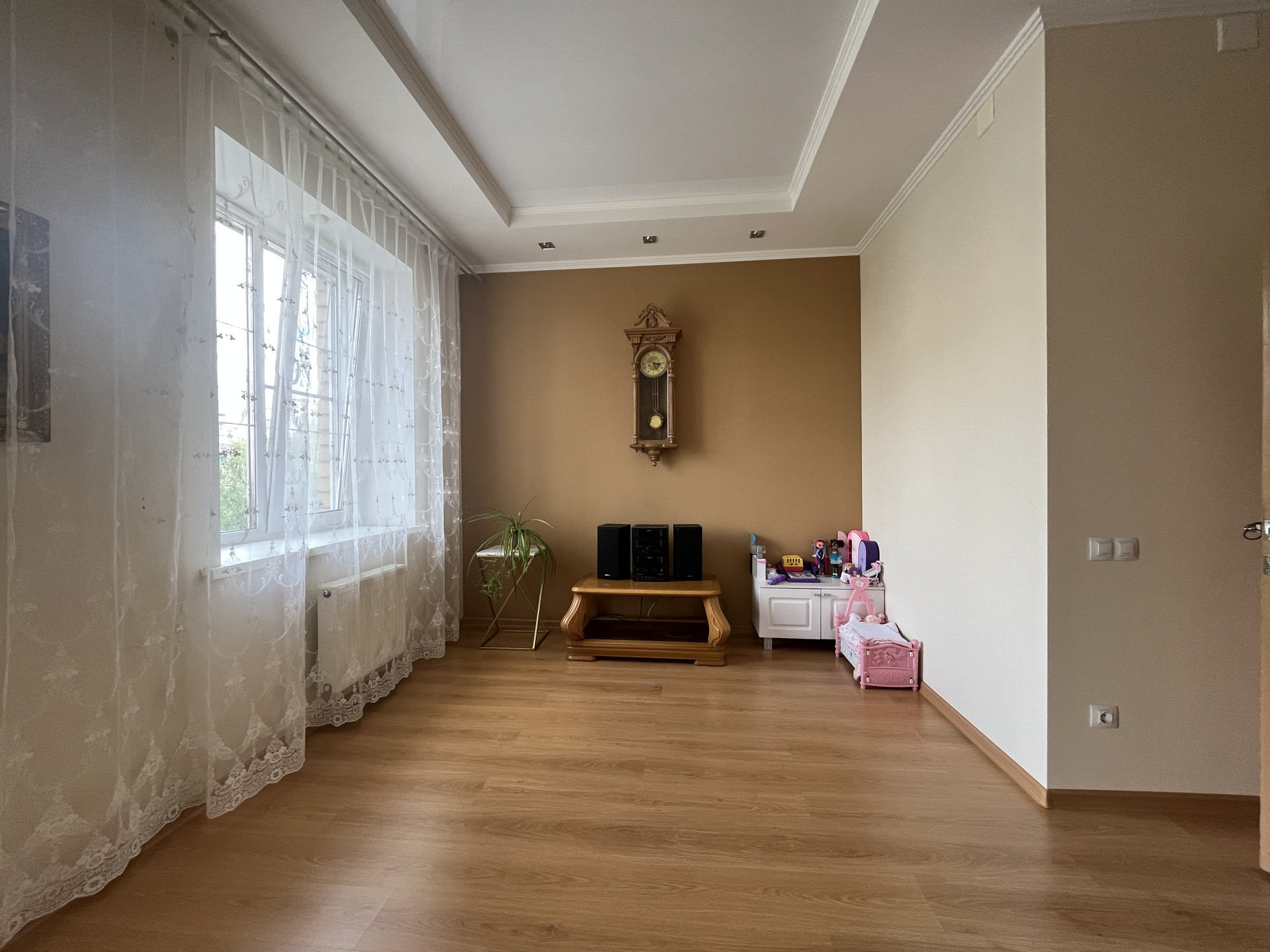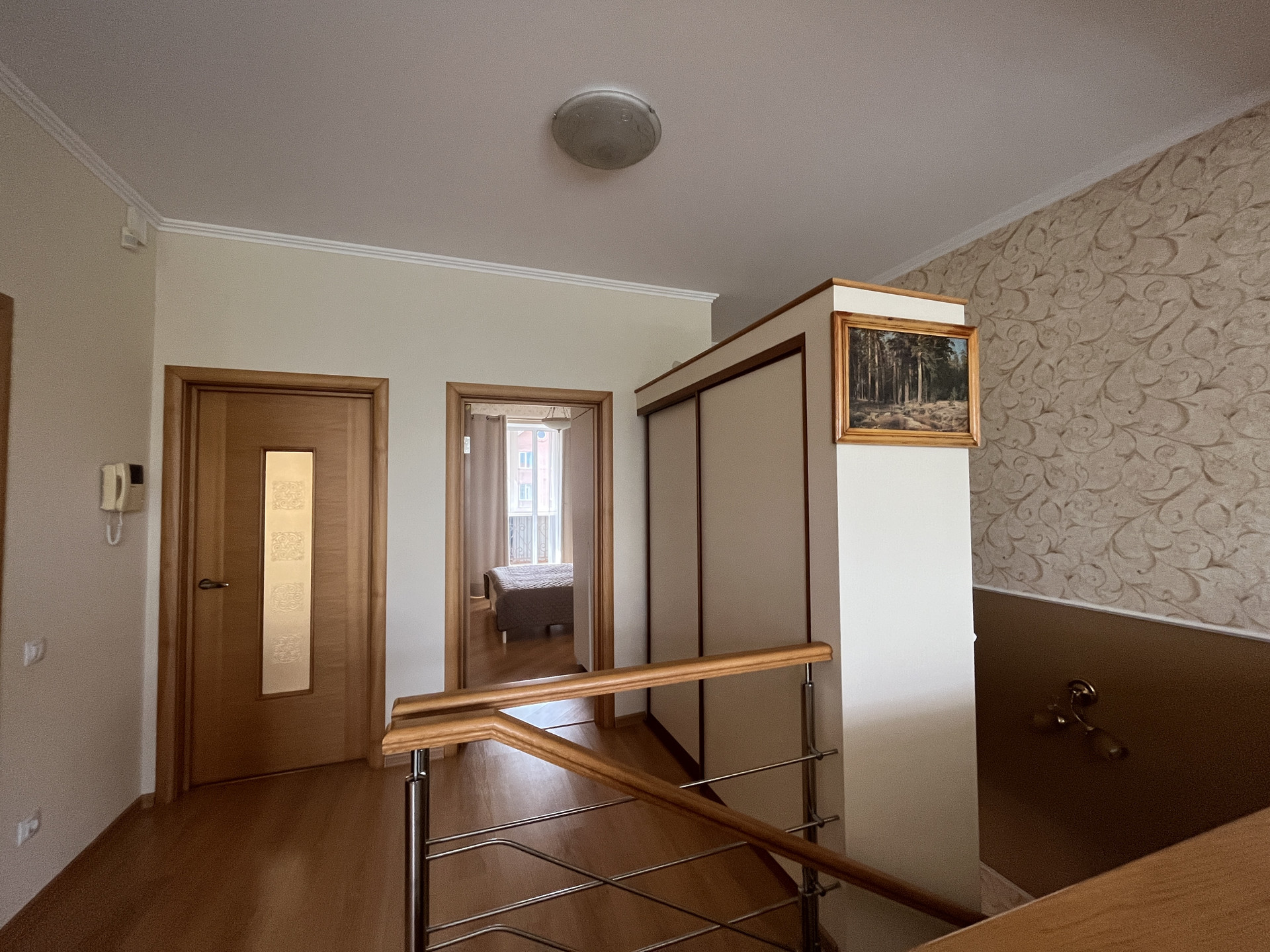 Отделка: Декоративная штукатурка, обои, ламинат, кафель в ванной (2 санузла-на втором этаже, и на первом гостевой), увеличенные оконные проемы для лучшего естественного освещения в комнатах. Теплые полы.