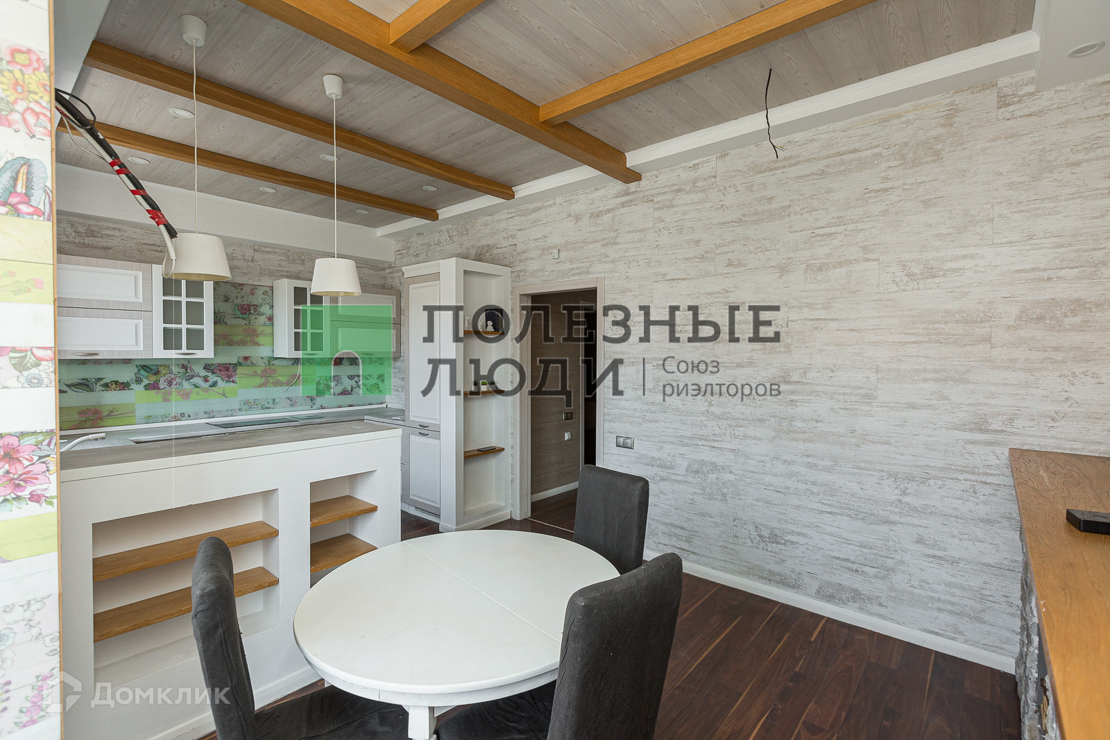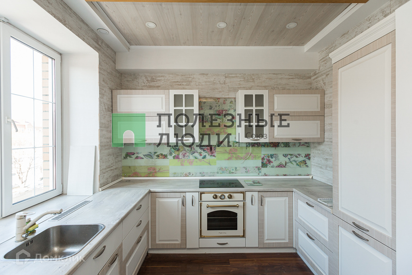Остаётся кухонный гарнитур со встроенной техникой (холодильник, посудомоечная машина, варочная поверхность, духовой шкаф).