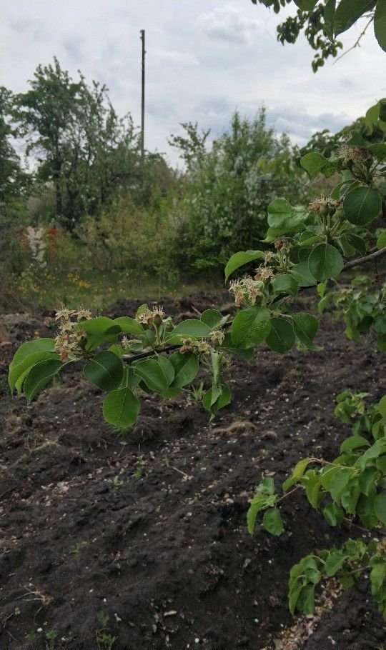в саду есть плодоносные груши и яблони, так же есть облепиха и вишня