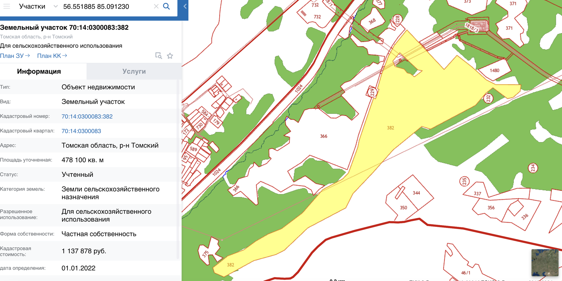 Адрес: Томская область, р-н Томский. Копыловское с/п напротив Киргизки Кадастровый номер 70:14:0300083:382