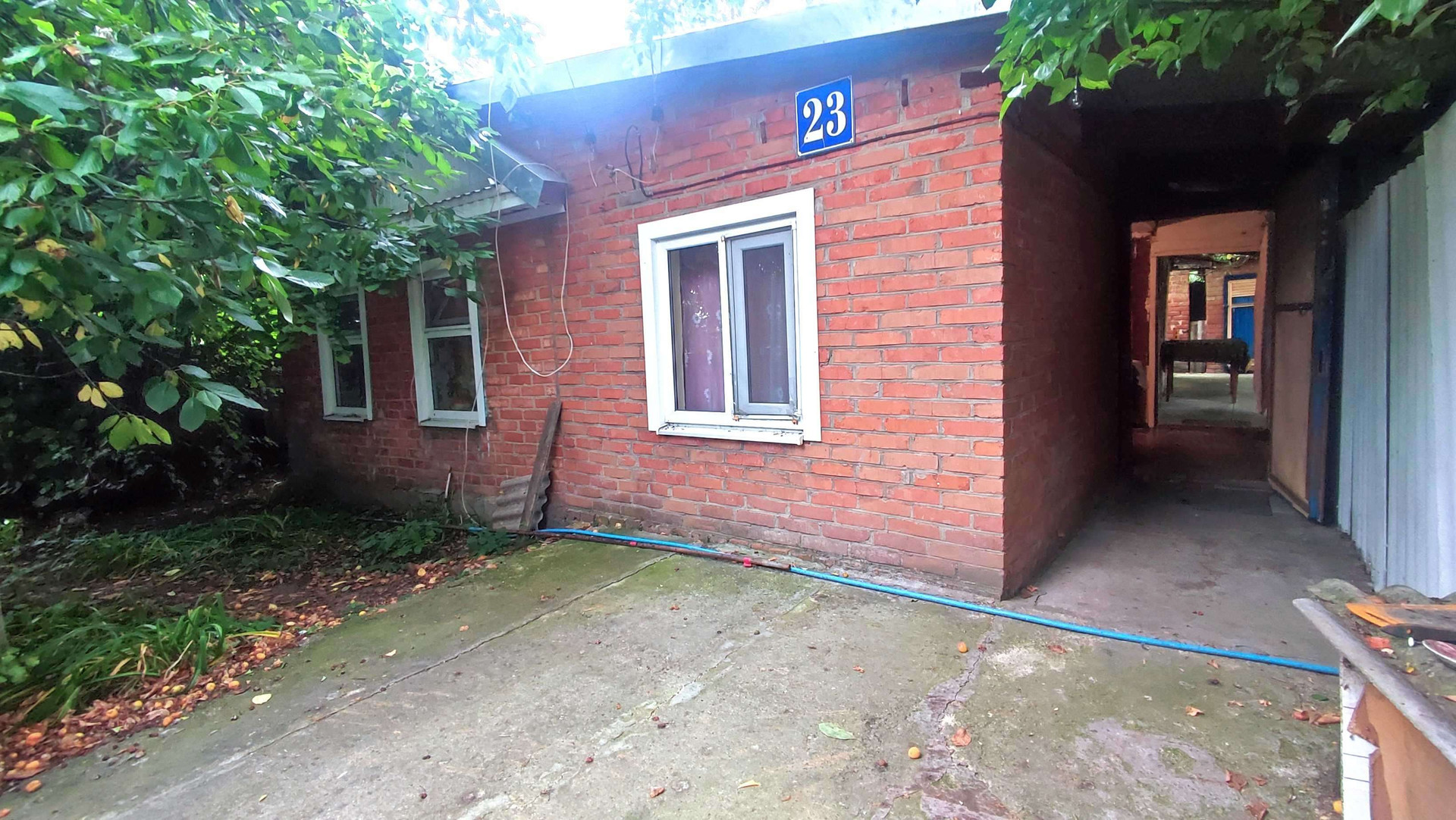 Траншейная 23. Продается дом 44 кв.м. Земельный участок 10 соток. Фасад 26 метров. Дом кирпичный. Газовое отопление, электричество, вода в доме. Продается с мебелью и техникой. Телевизор, холодильник, антенна Три-Колор, телефон, все есть. Заходи и живи. Отличный вариант жить и рядом строиться (см. тех.план). Хоз.постройки (баня,туалет,  два сарая один кирпичный другой деревянный, колодец). Ухоженный огород и плодоносящий сад. Удобное месторасположение, все в шаговой доступности. Асфальтированная улица. Документы готовы к продаже.