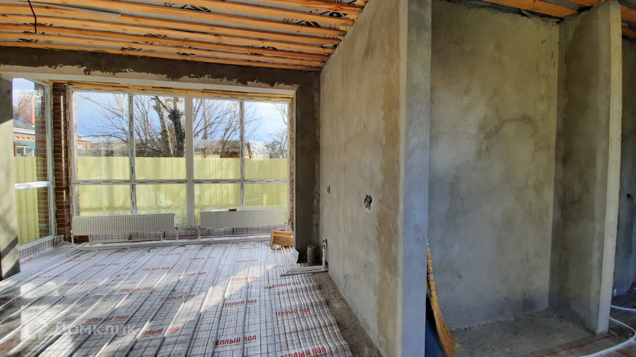 Разведены теплые полы везде кроме спален, в спальнях батареи, Отопление полностью готово, висит двухконтурный котел. имеется септик.