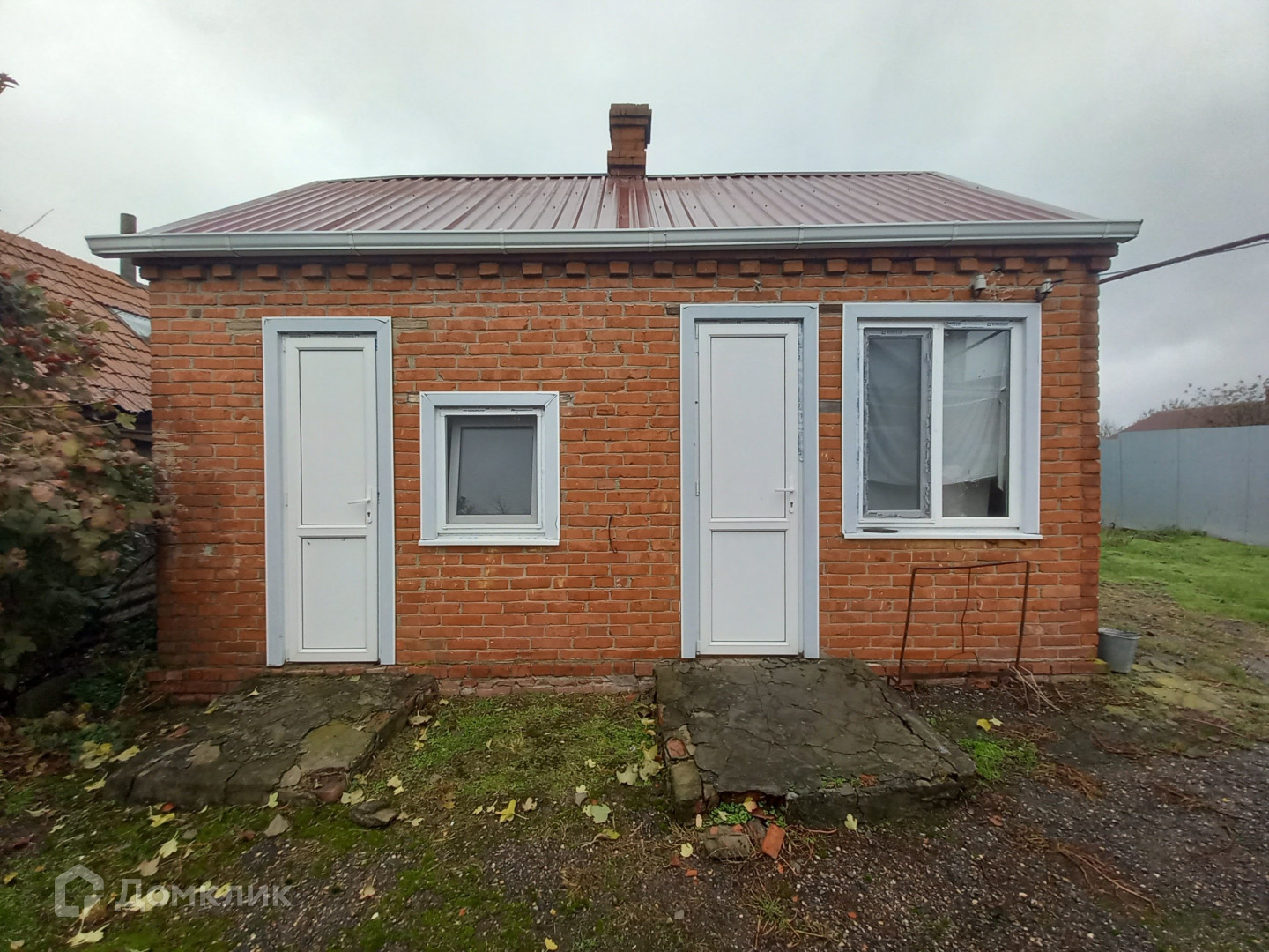Участок высокий, не подтапливается. Есть заезд для машины, хозпостройки во дворе, небольшой сад, огород.