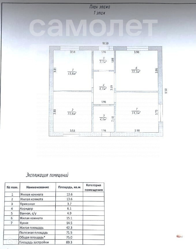 Общая площадь 75 м2