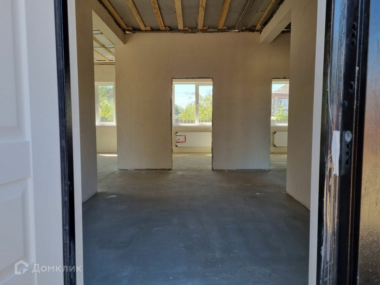 В доме сделана предчистовая отделка: теплый пол везде кроме спален, стяжка, выводы электрики во все функциональные зоны, стены оштукатурены.