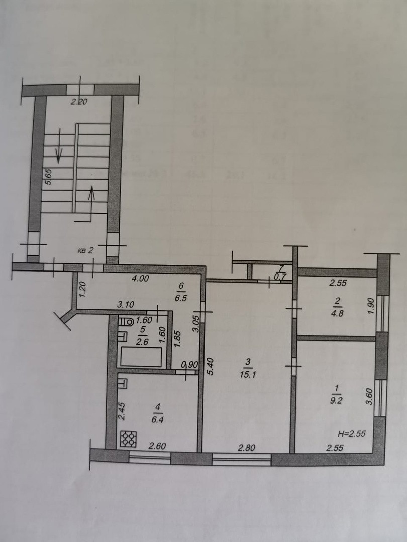 Общая площадь 45.3 м2