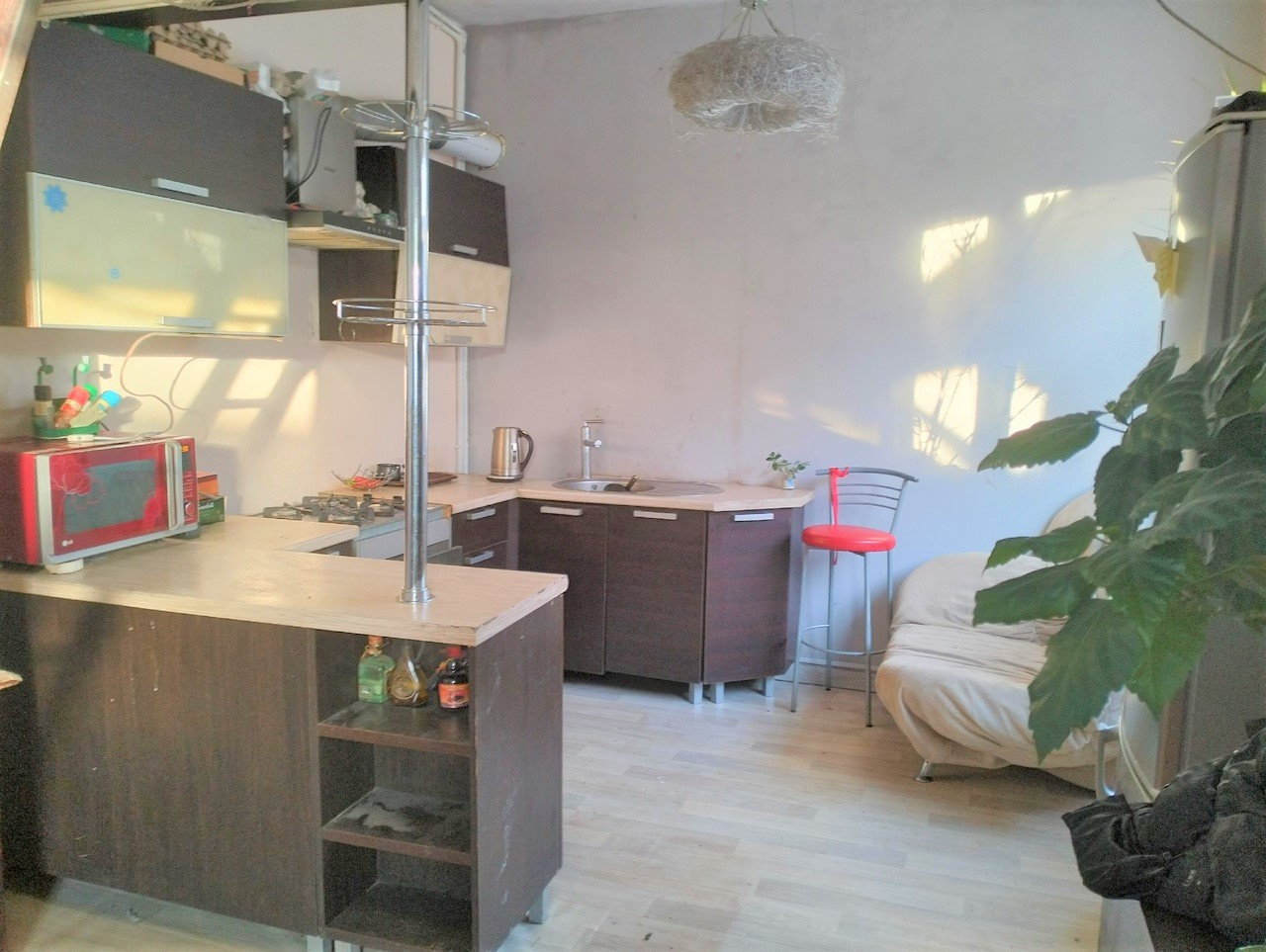 В доме остается: кухонный гарнитур, варочная панель, духовка, мебель.