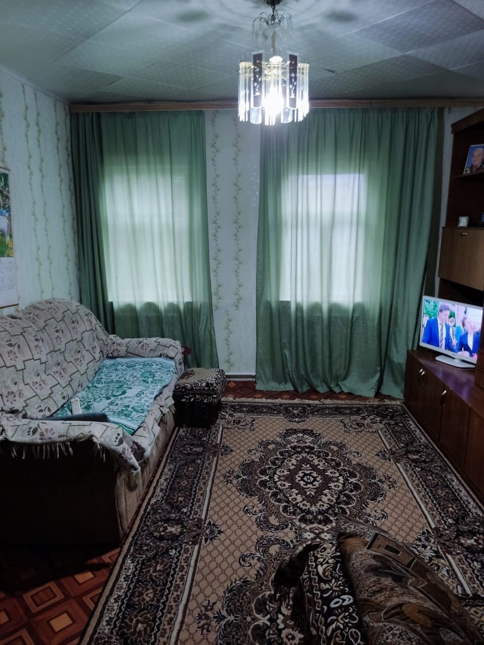 Сделан косметический ремонт, На полу линолеум ,стены ровны ,частично евро окна  и  натяжные потолки.