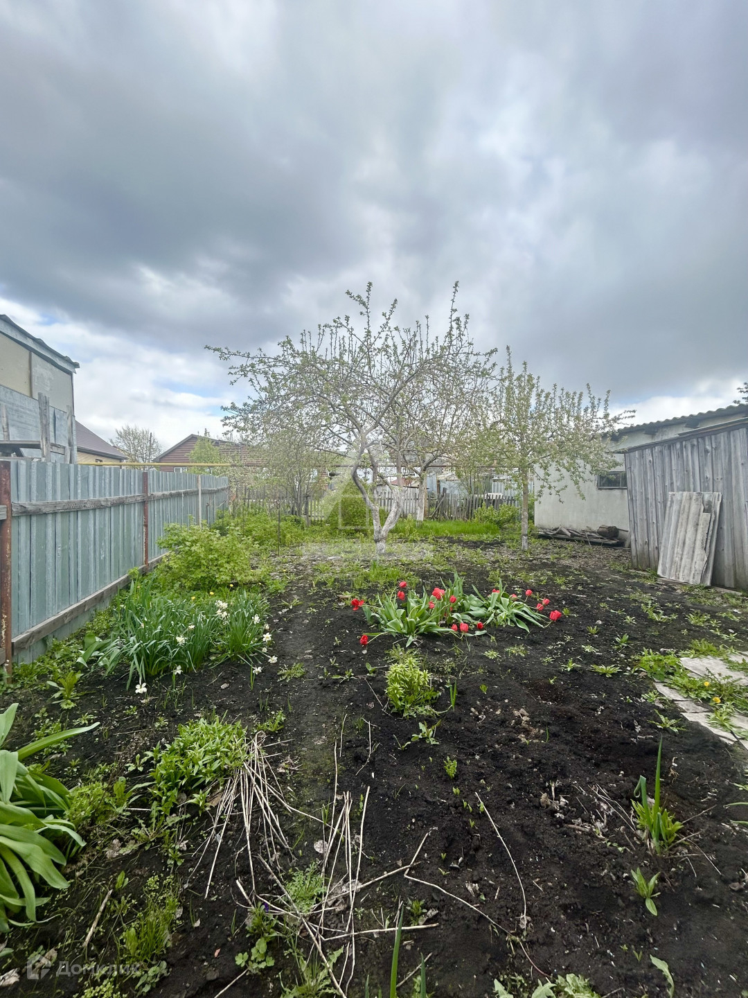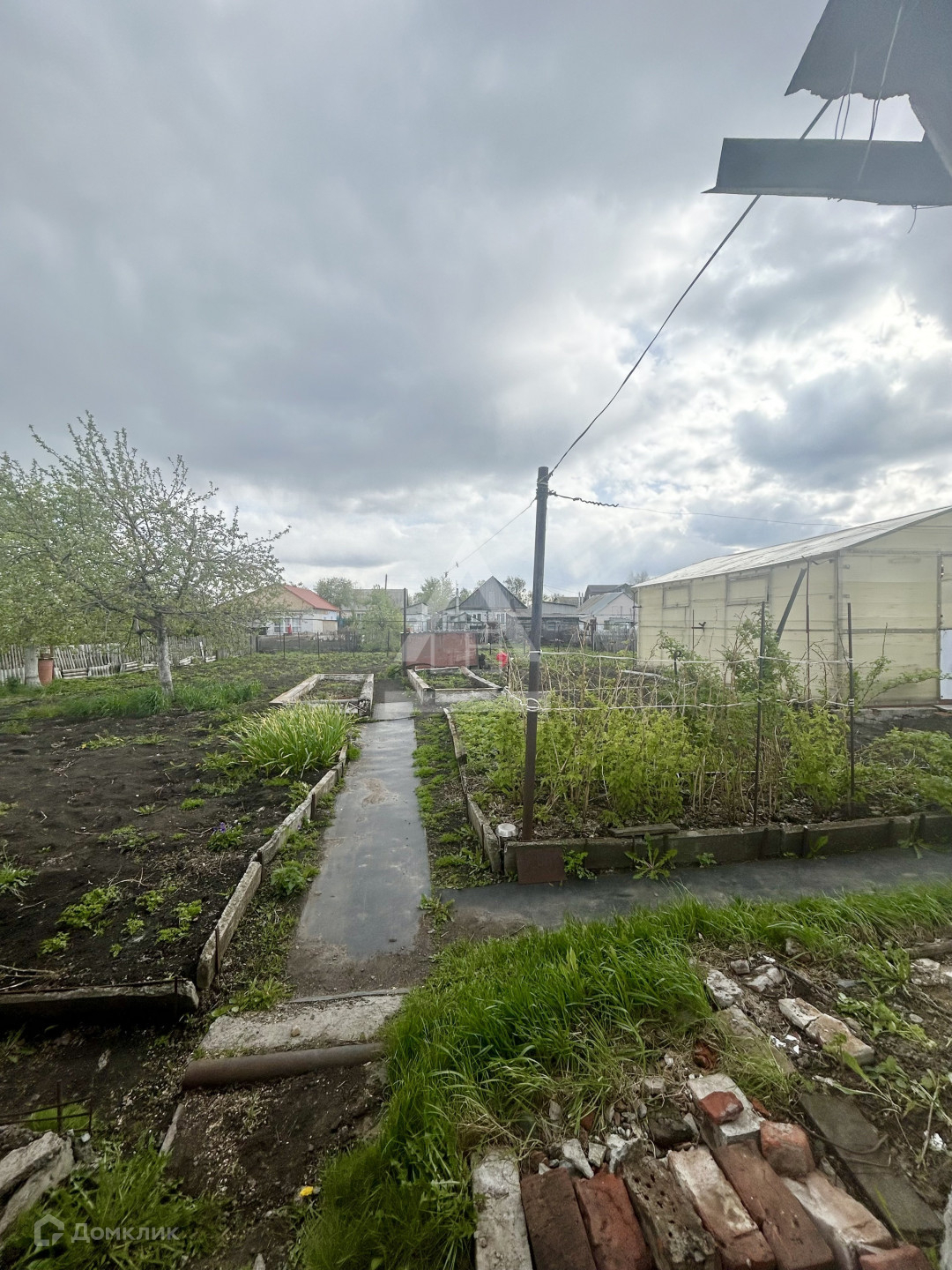 В огороде большая теплица, много плодовых деревьев и кустарников.